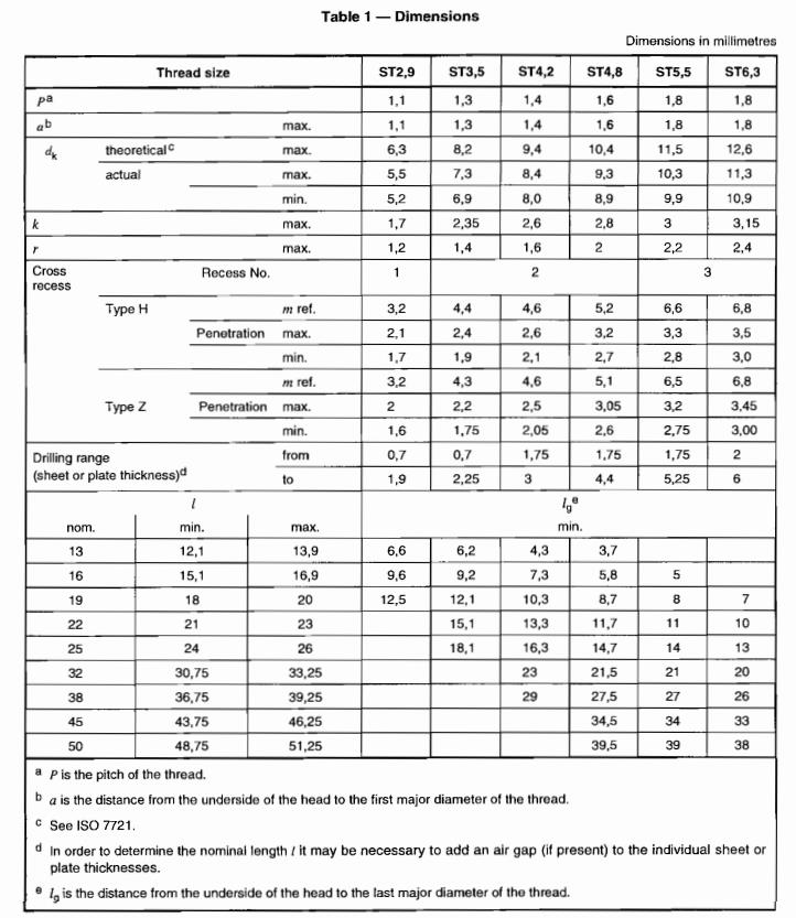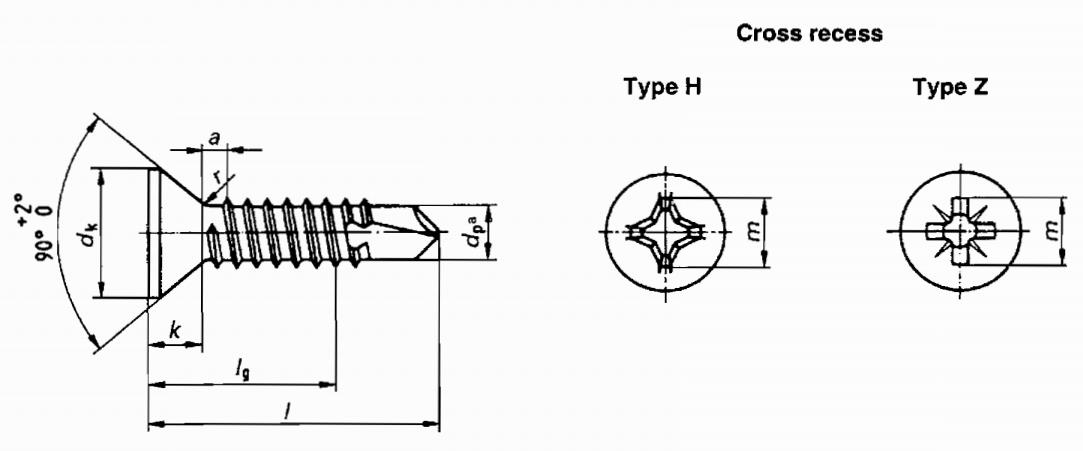 Cross recessed countersunk head drilling screws with tapping screw thread (ISO 15482:1999