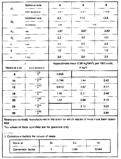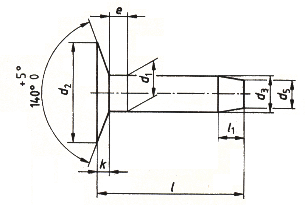 Flat countersunk head rivets with nominal diameters from 3 to 5 mm