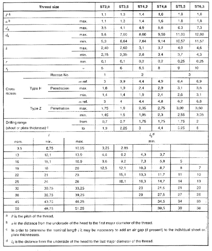 Cross recessed pan head drlling screws with tapping screw thread