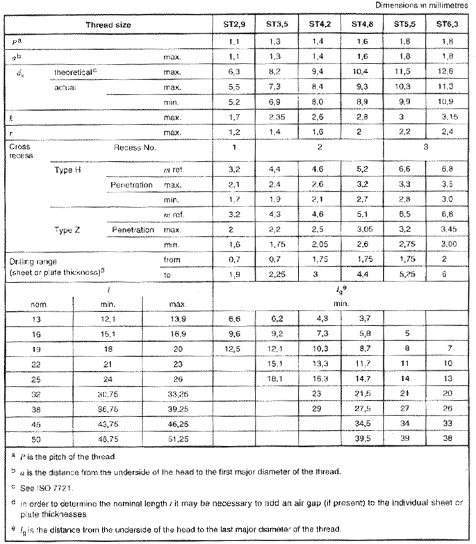 Cross recessed countersunk head drilling screws with tapping screw thread
