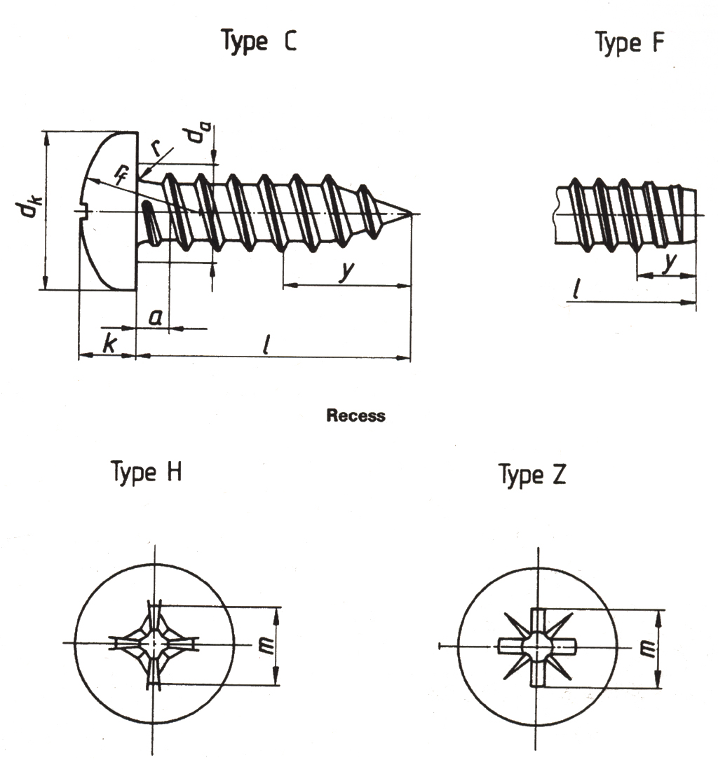 Cross recessed pan head tapping screws