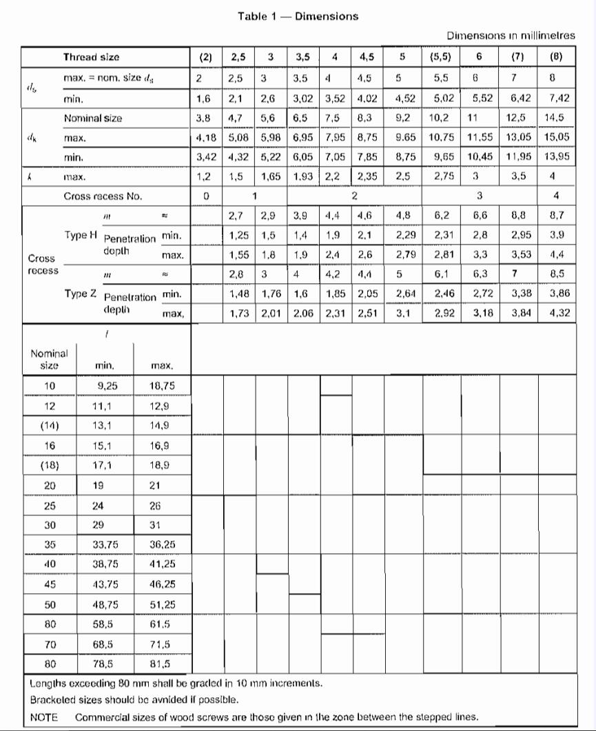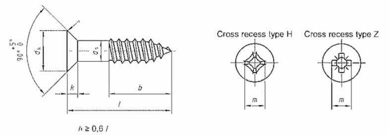 Cross recessed countersunk head wood screws