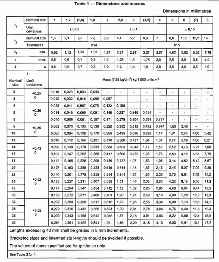 Countersunk head rivets - Nominal diameters 1 mm to 8 mm