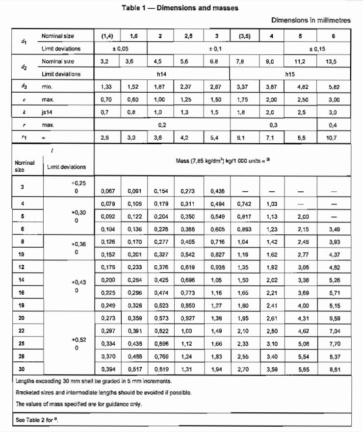 Flat round head rivets - Nominal diameters 1.4 mm to 6 mm