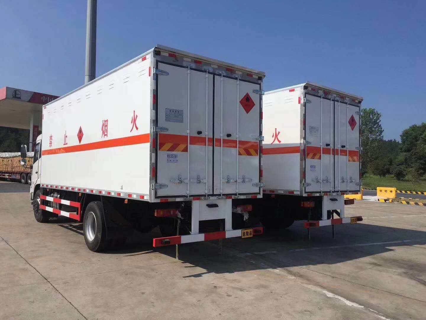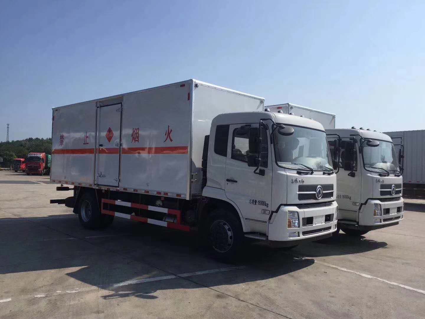 杭州陳總訂購2臺東風天錦易燃液體廂式車發車