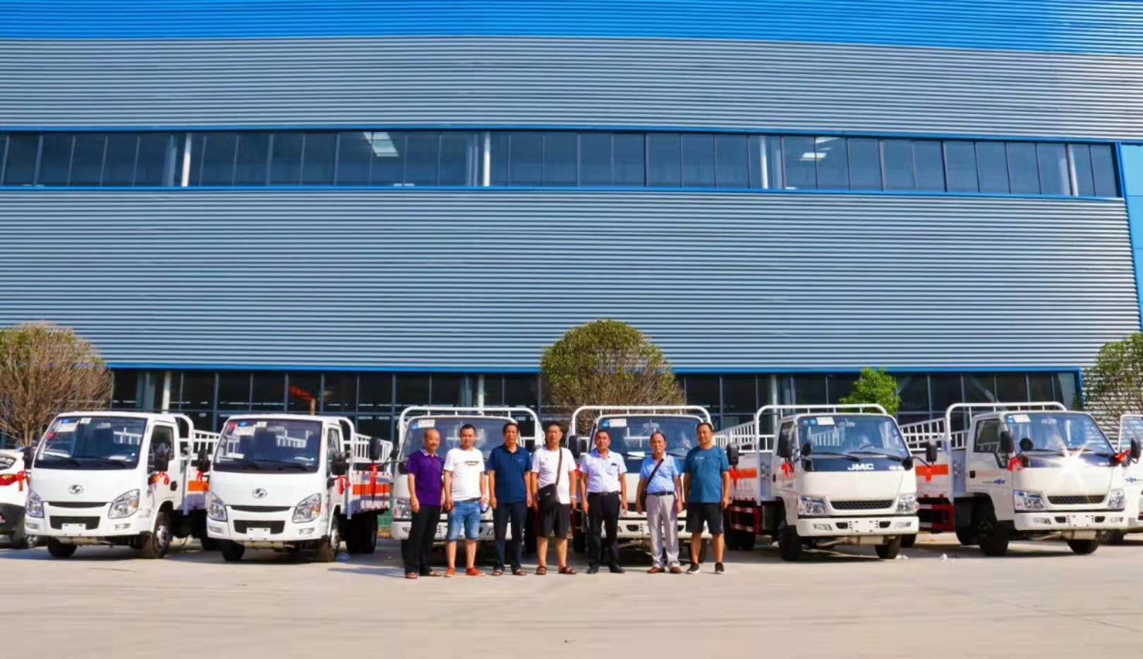 炎炎夏季,阻擋不了客戶購車熱情!江蘇金總通過朋友介紹找到我司陳經(jīng)理告知其欲購6臺氣瓶運輸車,陳經(jīng)理為金總推薦了江鈴氣瓶運輸車及躍進氣瓶運輸車,金總通過多項對比最終選擇了4臺江鈴氣瓶運輸車及2臺躍進氣瓶運輸車!氣瓶運輸車為常規(guī)車型,我司常年備有現(xiàn)車,金總來廠實地考察后于8月19日吉時進行提車,以下是具體發(fā)車圖片: