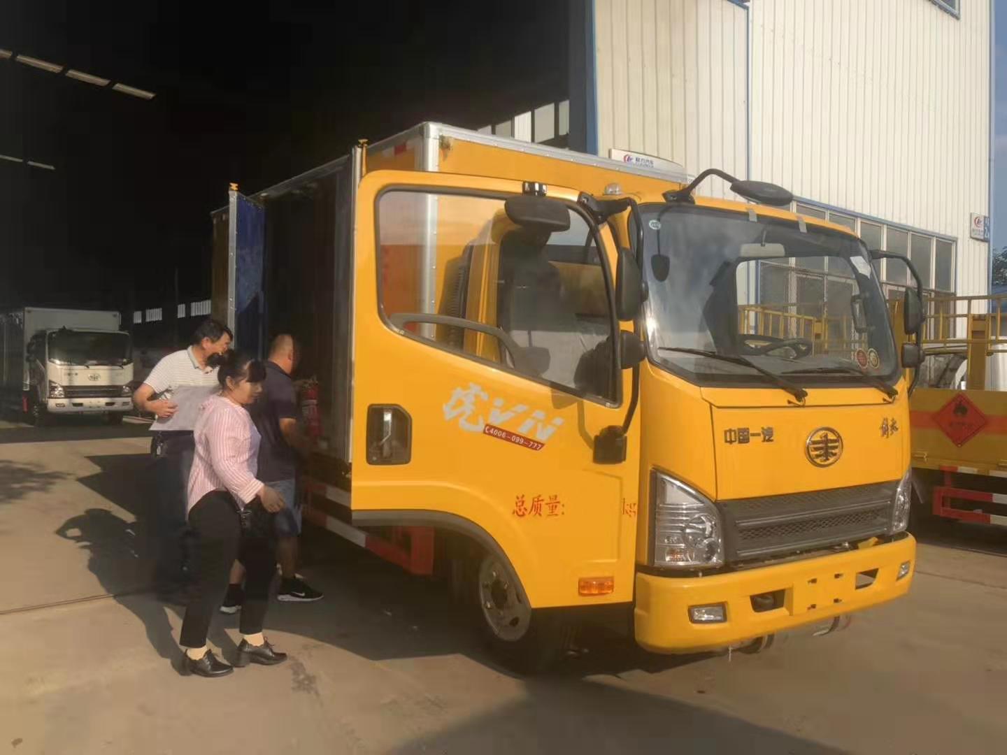 解放虎威整車工程黃易燃氣體廂式運輸車駕駛室準乘人數(shù)3人,帶空調,帶助力,藍牌性價比最高車型!感謝湖南周總對我司的信任與支持,祝用車愉快、生意興。