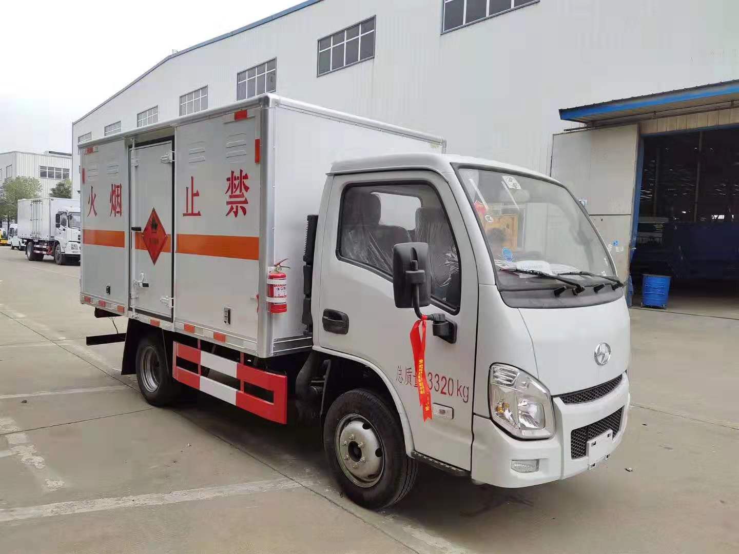 廂體配置:嚴(yán)格按照公告尺寸制作,外板采用1mm厚冷軋板有一次性成型的百葉窗,內(nèi)飾為導(dǎo)電性能良好的鋁板有透氣孔,內(nèi)襯為矩形管骨架牢靠穩(wěn)定,內(nèi)部填充為透氣防潮阻燃的擠塑板,四種材料經(jīng)現(xiàn)代工藝復(fù)合而成,廂體外部上下鋁合金型材包邊,底板和車廂前下部鋪橡膠皮,后門雙開,右側(cè)中部單開門,霧報警器和門防盜報警器,嚴(yán)格按照國家危險品相關(guān)法規(guī)張貼
