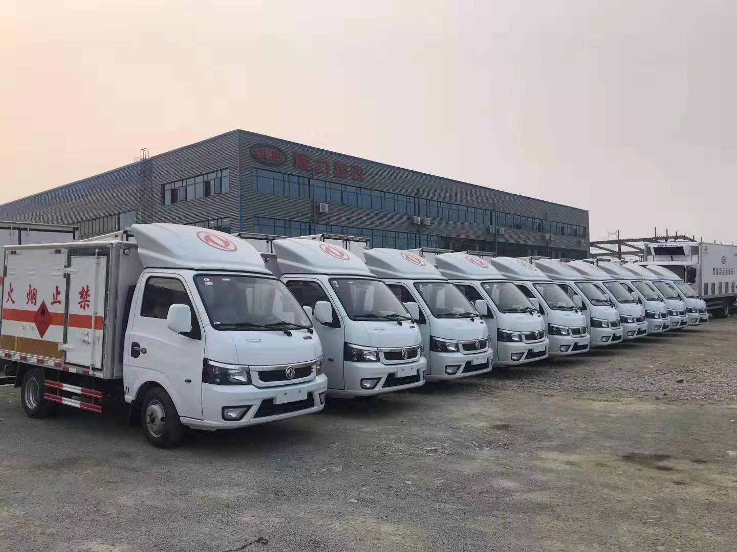 整齊劃一的東風途逸易燃氣體廂式運輸車擺放在公司廠區門口,在余輝照耀下顯得格外耀眼,一排排車輛即將服務千家萬戶,愿吳總用車愉快、生意興隆!訂購危險品車來程力專汽,給您專業的解答和實在的優惠價格!歡迎撥打我司24小時服務熱線:13872880150陳經理/18372237788楊經理,程力專汽愿竭誠為您服務!