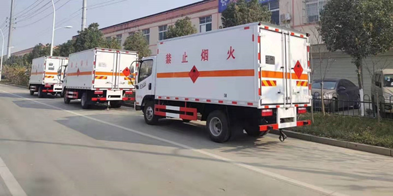 廂體配置:嚴格按照公告尺寸制作,外板采用1mm厚冷軋板有一次性成型的百葉窗,內飾為導電性能良好的鋁板有透氣孔,內襯為矩形管骨架牢靠穩定,內部填充為透氣防潮阻燃的擠塑板,四種材料經現代工藝復合而成,廂體外部上下鋁合金型材包邊,底板和車廂前下部鋪橡膠皮,后門雙開,右側中部單開門,內部有固定貨物的臥環,車輛外部有靜電帶、滅火器、防火罩,車廂內安裝煙霧報警器和門防盜報警器,嚴格按照國家危險品相關法規張貼