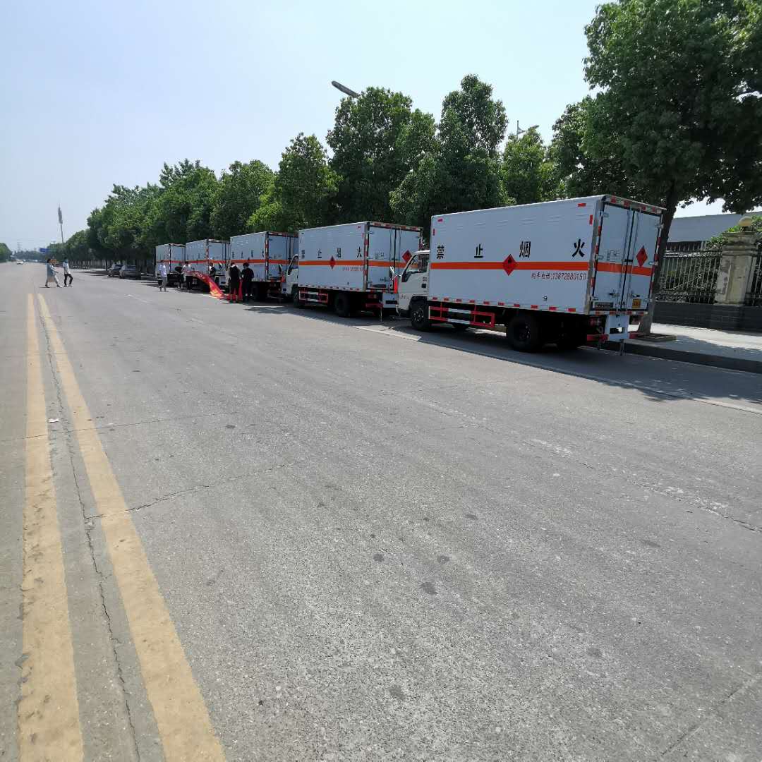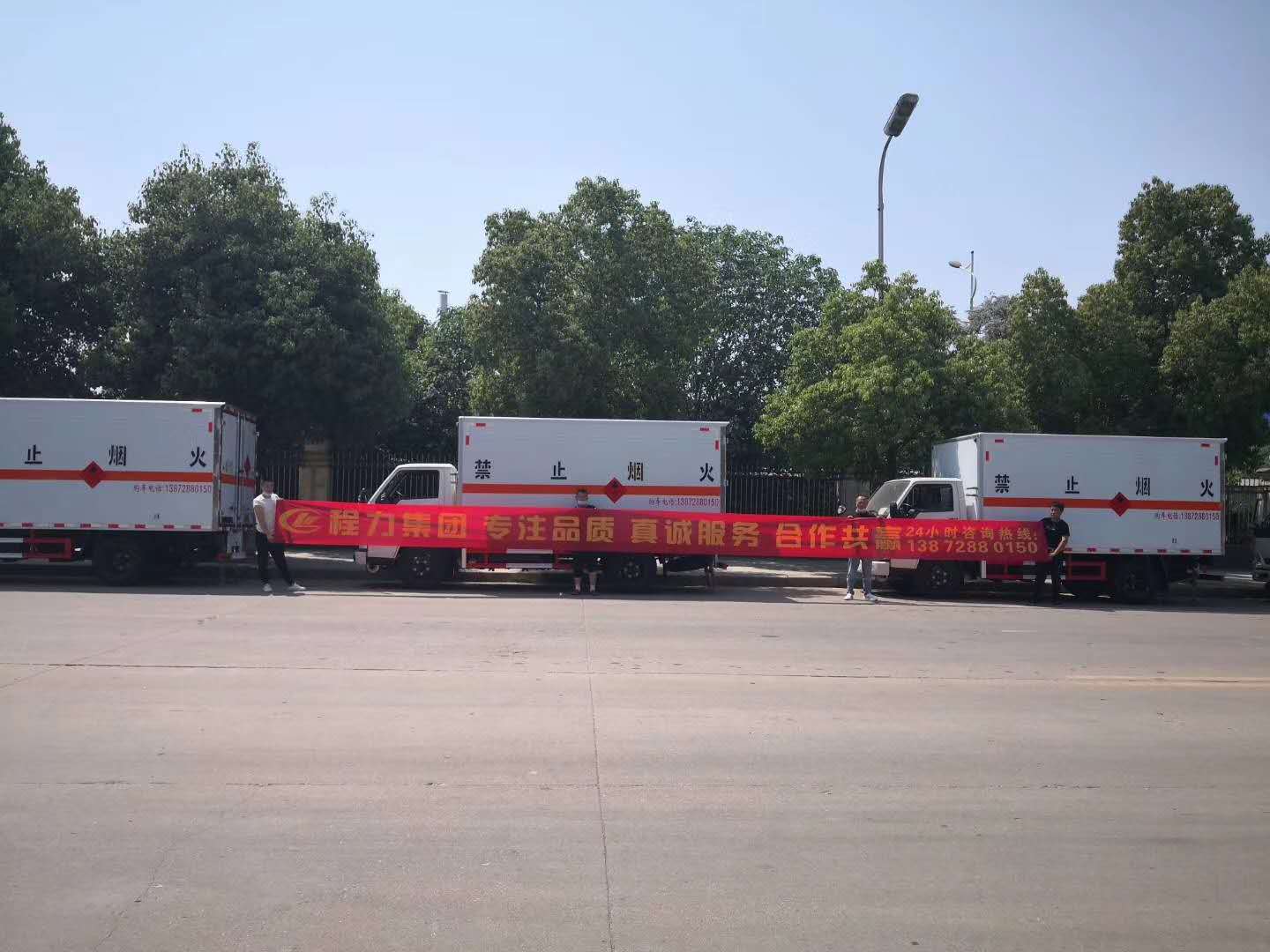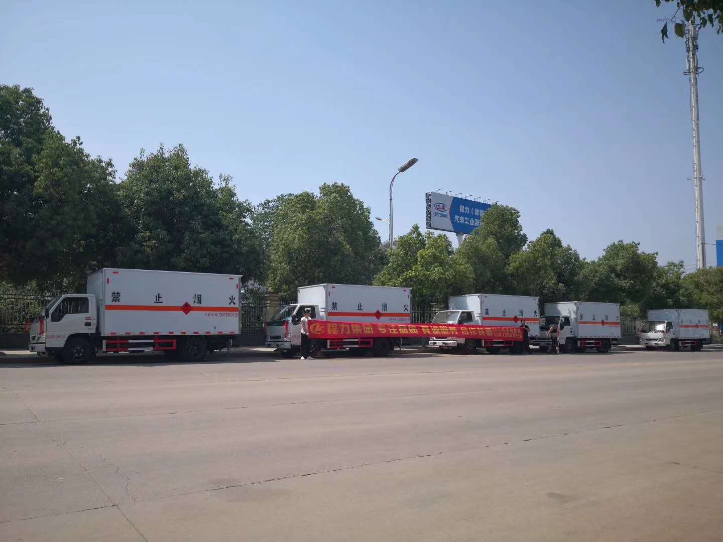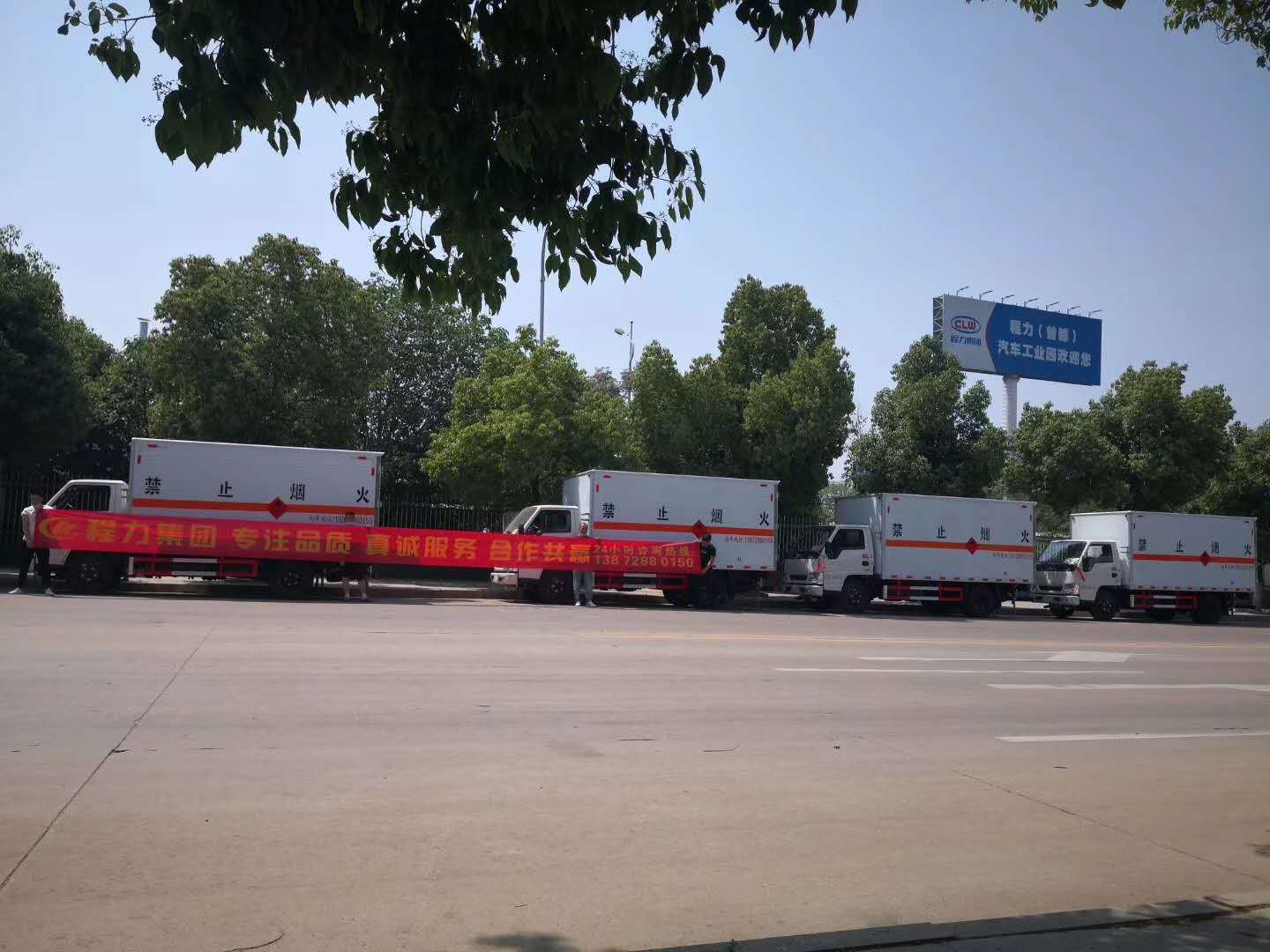 馬達一響、黃金萬兩!車輪一轉,秒賺一萬!青島王總訂購的五臺江鈴易燃液體廂式車已生產完畢,準備發車!以下是具體發車實拍:
