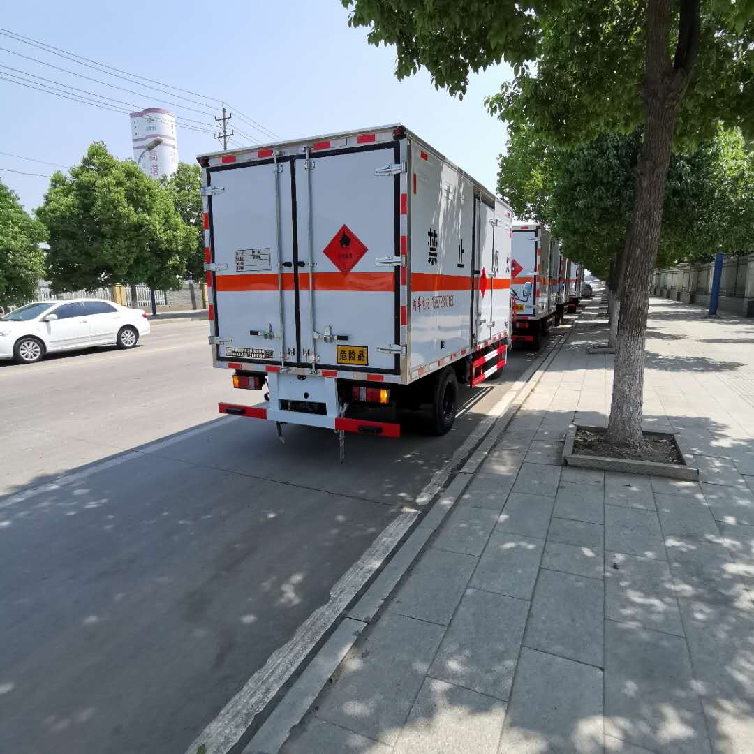 江鈴順達易燃液體廂式車采用危險品專用底盤,單拓可前翻駕駛室,3360MM軸距,搭載江鈴五十鈴116馬力柴油發動機,國五排放,帶空調,方向助力,前盤后鼓剎,排氣管前置,限速裝置,ABS,大燈可調節,剎車臂自動調節,7.00R16鋼絲胎。箱體采用拼裝結構,外厚度為1.5毫米厚度武鋼冷軋鋼板,中鋼骨架,內壁為鋁合金板,箱體厚度為5公分,箱體外表上方采用模壓成型帶防水通風功能百葉窗,固定貨物的臥式拉環鉚接在鋼骨架上,牢固可靠。門內安裝高精度限位裝置和駕駛室內部報警器相連接,杜絕箱門未鎖緊情況。箱體外部箱門打開處安裝防自關門的限位風勾,箱體外觀涂裝灰色油漆,駕駛室內部安裝安全報警器連接后部箱體,對箱體內部實施安全監控。