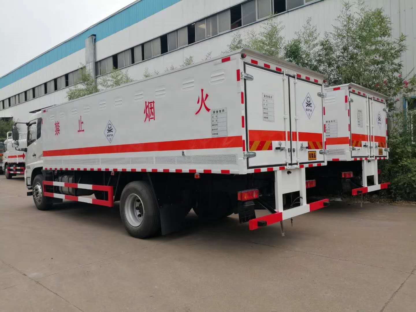 毒性氣體危險品廂式車在危險品車分類中被劃分為二類三項,很多客戶在使用時容易誤認為是六類危險品車,在此提醒各位車主多加注意。針對毒性氣體運輸的特殊性,我司定制了東風天錦毒性氣體危險品廂式運輸車,河南鄭州李總在我司自提了兩臺東風天錦毒性氣體危險品廂式運輸車,詳細配置如下: