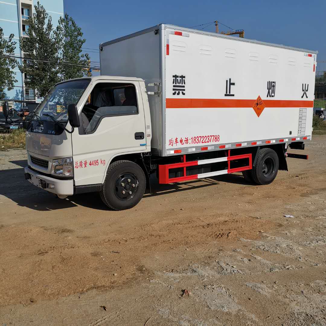 底盤型號(hào):JX1041TG25。江鈴國五原廠危貨底盤,白色駕駛室,江鈴115馬力柴油發(fā)動(dòng)機(jī),5檔變速箱,3360軸距,7.00R16輪胎,油剎。廂體為金屬骨架結(jié)構(gòu),廂體生產(chǎn)工藝采用3mm底板,上鋪靜電膠皮,高600mm的墻板,高欄。邊板為平板,內(nèi)外采用靜電屏蔽武鋼優(yōu)質(zhì)冷軋鋼板,中間填充B1級(jí)阻燃泡沫,配備隨車工具,滅火器,三角頂燈,防火帽,防靜電拖帶,貼反光標(biāo)識(shí)等。