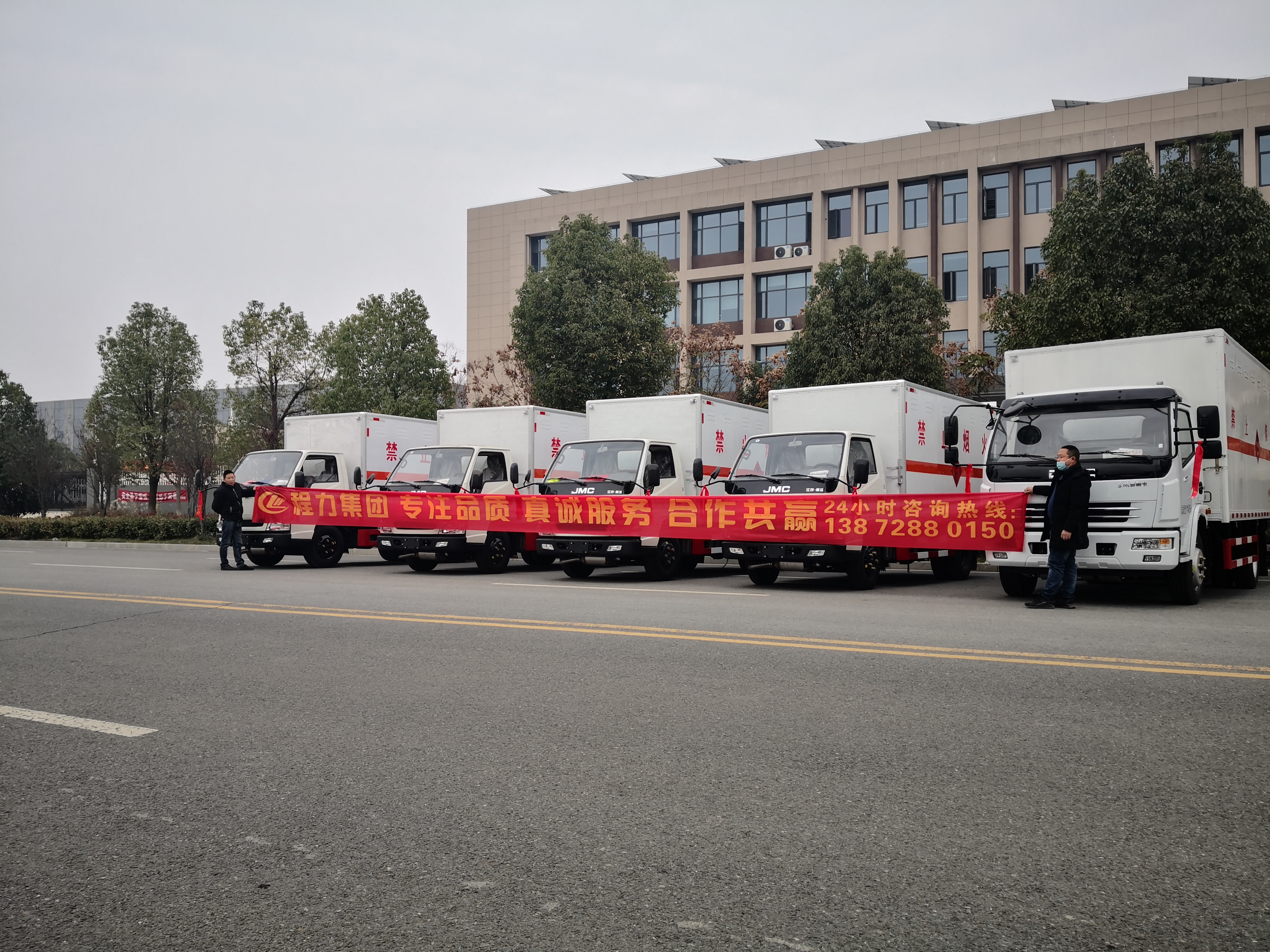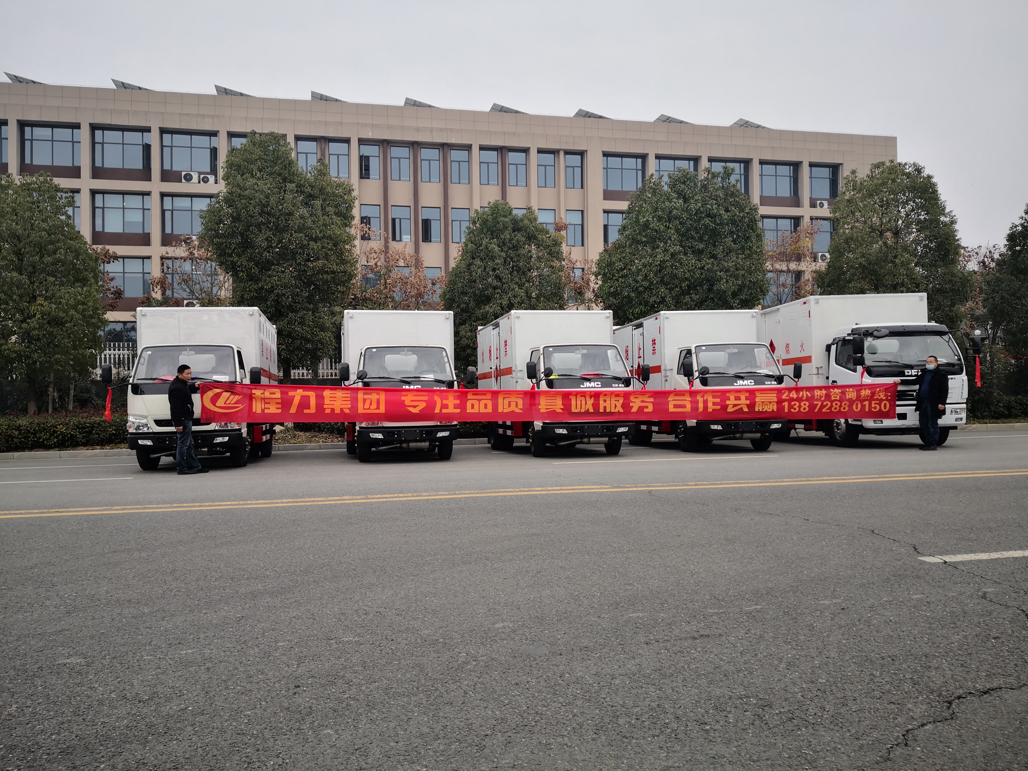 三類危險品運輸一直是市場上運輸量非常大的種類,因而購買三類危險品車的客戶也非常多,尤其是年底忙碌旺季,很多客戶會選擇增加車輛方便更好地進行運輸。天津李總從事三類危險品運輸多年,因公司需要,在我司自提了五臺危險品車(分別為4臺江鈴危險品車和1臺東風大多利卡危險品車),以下是詳細發車實拍: