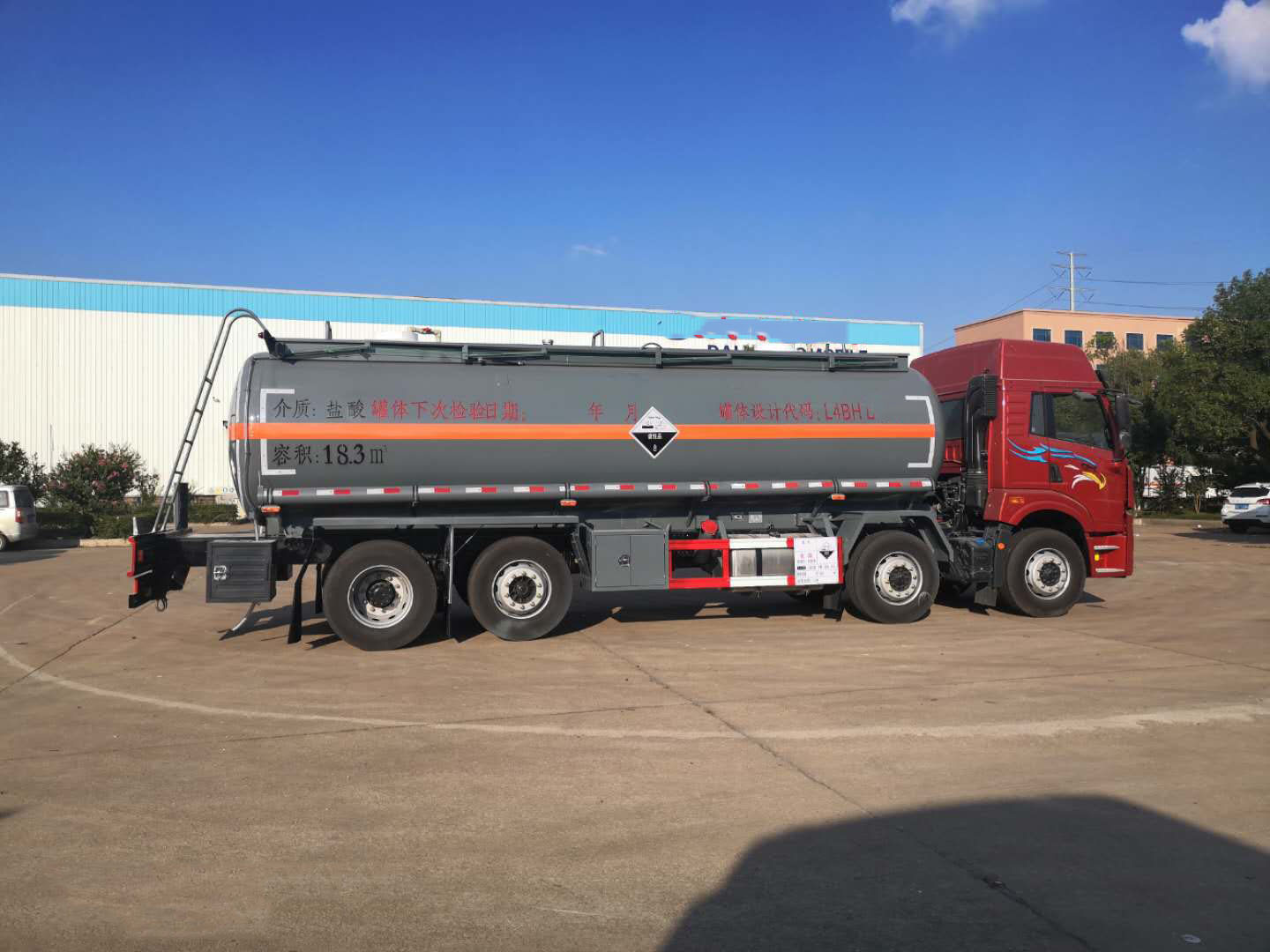 運輸鹽酸硫酸都需要專用的危險品車,此時當然需要腐蝕品罐式運輸車來幫忙。近日,程力專汽新推出的解放前四后六腐蝕品罐式運輸車,詳細配置如下: