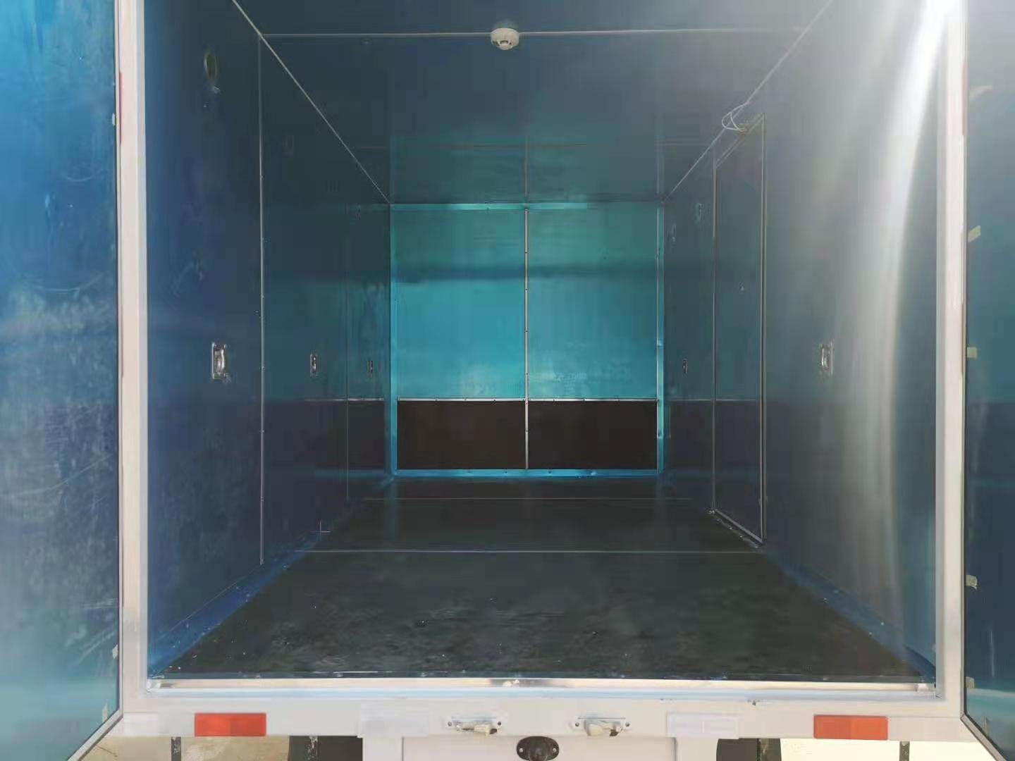 躍進小福星汽油版國六危險品車嚴格按照公告尺寸制作,外板采用1mm厚冷軋板有一次性成型的百葉窗,內飾為導電性能良好的鋁板有透氣孔,內襯為矩形管骨架牢靠穩定,內部填充為透氣防潮阻燃的擠塑板,四種材料經現代工藝復合而成,廂體外部上下鋁合金型材包邊,底板和車廂前下部鋪橡膠皮,后門雙開,右側中部單開門,嚴格按照國家危險品相關法規張貼。