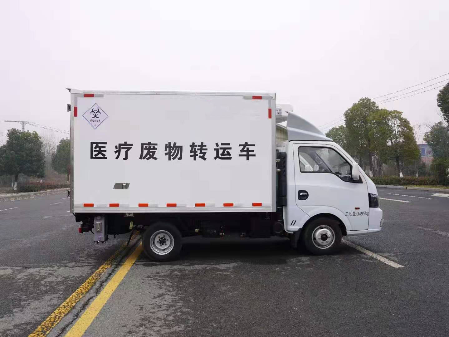 東風途逸汽油國六醫療廢物轉運車,東風途逸危險品底盤:EQ1035SJ16QCWXP,2600mm軸距,1650單排駕駛室,柳機LJ4A15Q6(113馬力),5檔變速箱,1.5噸/2.5噸車橋,175R14真空輪胎【后雙輪】標配動力轉向,日間行車燈,中控門鎖,電動門窗,油剎,定速巡航,藍牙電話,多功能方向盤。ECU電子限速;ABS;排氣管前置;排氣制動;前盤式制動;空調,電源總開關。整車型號:EZW5033XYY6,整車尺寸:5210×1860×2770,廂體尺寸:3000×1700×1700,配置:廂體外玻璃鋼內不銹鋼,中間填充高密度保溫材料,后門為雙層密閉結構,并采用迷宮式封條,使車廂完全封閉。箱內安裝卡槽,地漏帶污水箱,廂內安裝紫外線消毒燈,加裝自動消毒噴霧器(噴頭安裝在箱內頂部)。車廂體內裝配紫外線消毒殺菌設備。醫療廢物轉運車采用帶有“醫療廢物”標識,整車帶零下5度機組,嚴格按照公告生產!
