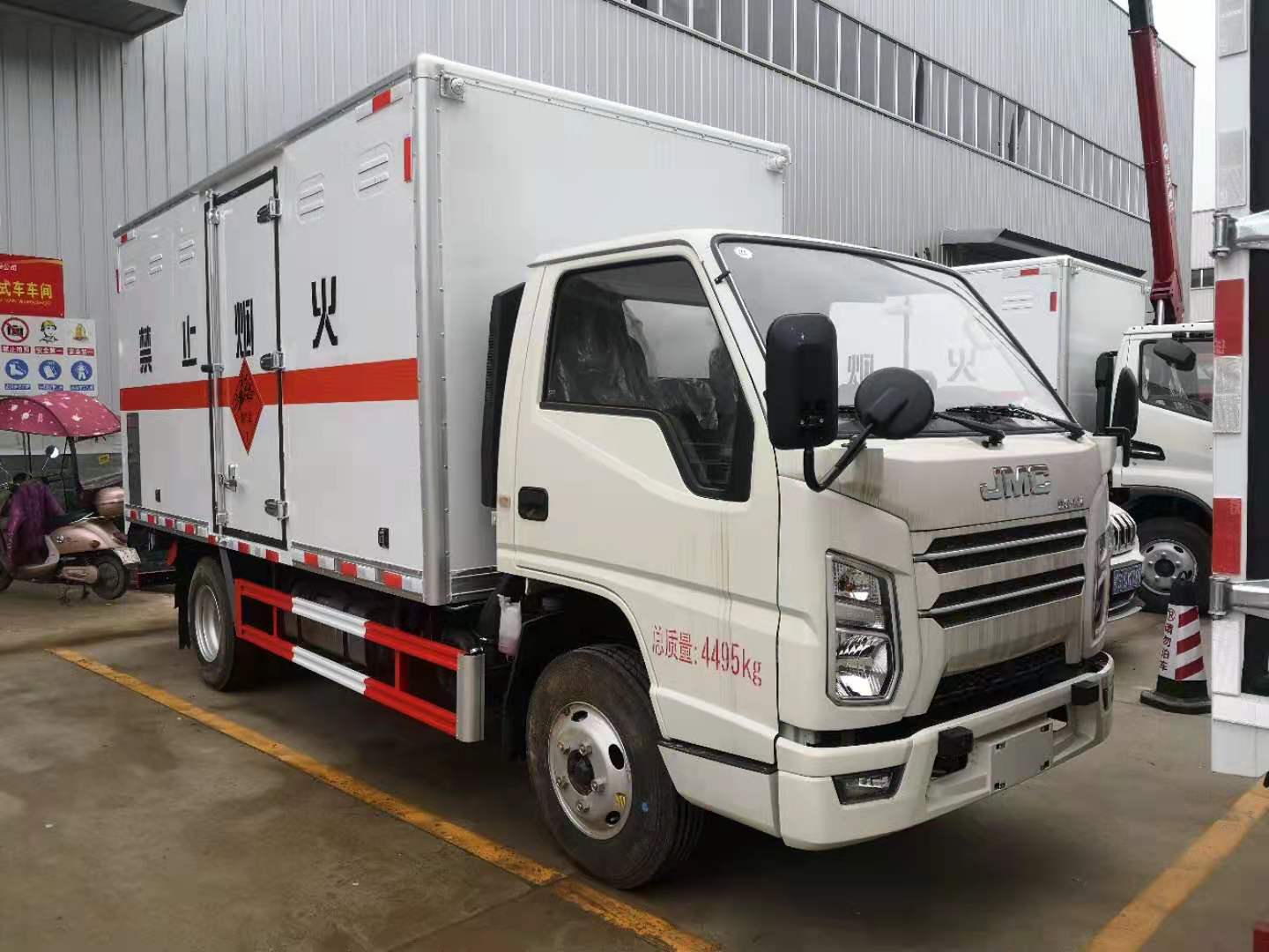江鈴國六防爆車廂體嚴(yán)格按照公告尺寸制作,外板采用1mm厚冷軋板有一次性成型的百葉窗,內(nèi)飾為導(dǎo)電性能良好的鋁板有透氣孔,內(nèi)襯為矩形管骨架牢靠穩(wěn)定,內(nèi)部填充為透氣防潮阻燃的擠塑板,四種材料經(jīng)現(xiàn)代工藝復(fù)合而成,廂體外部上下鋁合金型材包邊,底板和車廂前下部鋪橡膠皮,后門雙開,右側(cè)中部單開門,內(nèi)部有固定貨物的臥環(huán),車輛外部有靜電帶、滅火器、防火罩,車廂內(nèi)安裝煙霧報警器和門防盜報警器,嚴(yán)格按照國家危險品相關(guān)法規(guī)張貼。