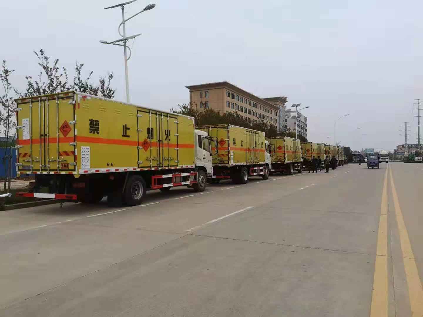 民爆危險品車是目前市場上使用非常廣泛的車型,該車主要在工地上使用非常多。近日,河北雷總因為礦上開采,需要運輸煙火及炸藥,在我司批量采購了6臺東風天錦一類危險品車,以下是具體發車實拍: