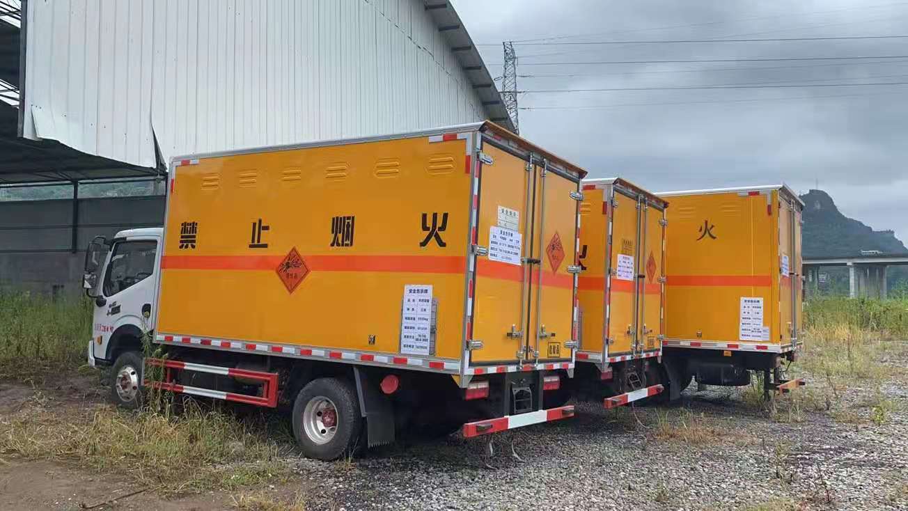 民爆物品運輸都少不了專用的車輛,尤其是東風系列車型。在眾多東風車型中,玉柴140馬力危險品車最受歡迎。近日,重慶張總在我司自提了三臺東風多利卡爆破器材運輸車,以下是客戶提車后的實拍圖片: