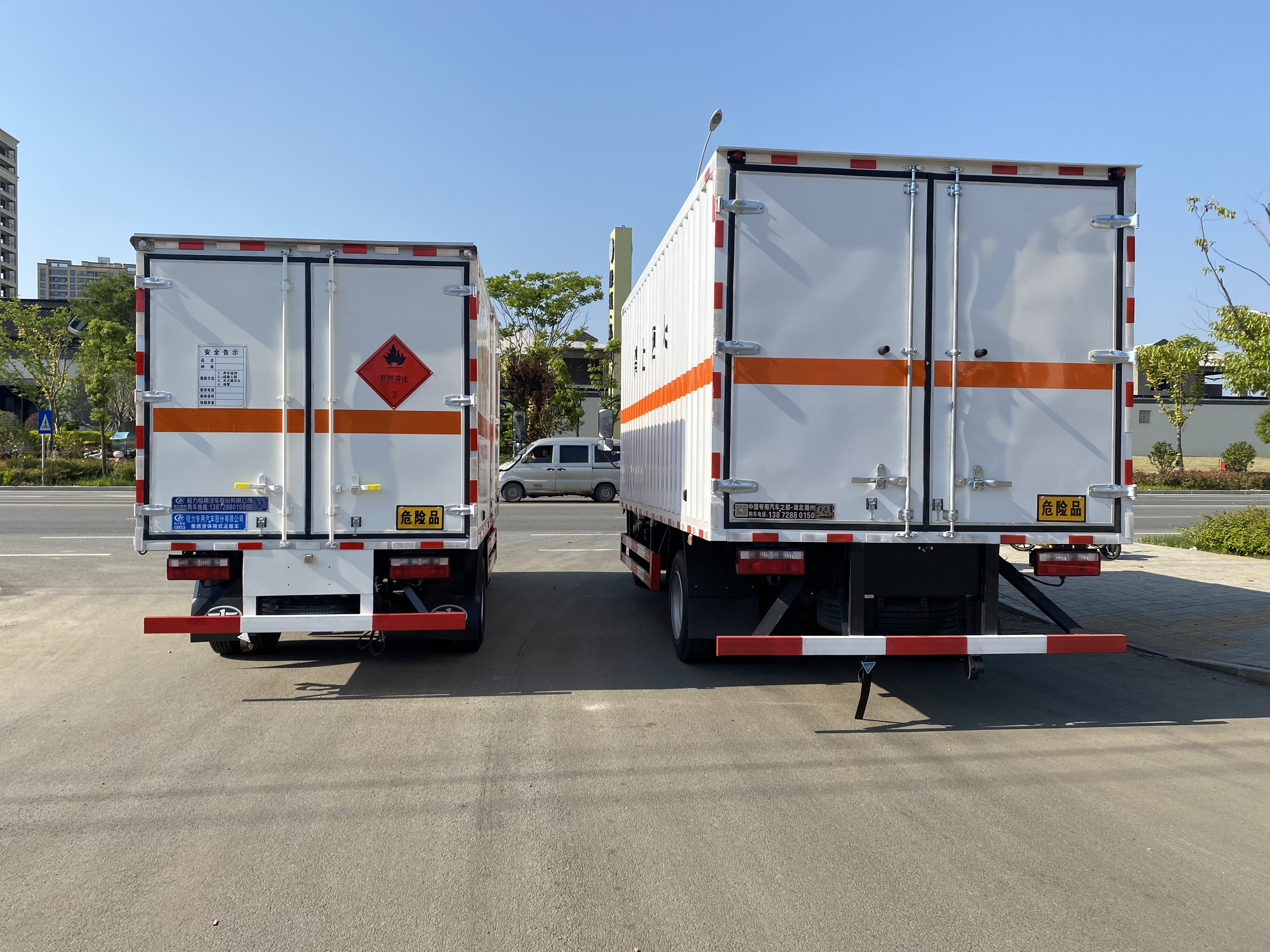 運輸醇基燃油、柴汽油都少不了專用的車輛,尤其是危險品廂式車。蘭州客戶李總因業(yè)務需求在我司訂購2臺解放國六醇基燃油運輸車,以下是具體發(fā)車實拍: