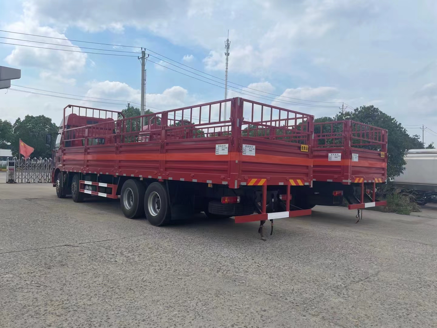 解放前四后八國六氣瓶車尾部帶液壓尾板,整車不超重,貨箱采用可拆卸式花欄貨箱,底板上鋪靜電膠皮,嚴格按照國家危險品法規進行“易燃氣體”標識粘貼,隨車配備手提滅火器,危險品三角頂燈,防火帽等。帶整車合格證、隨車工具、服務手冊、保修手冊。
