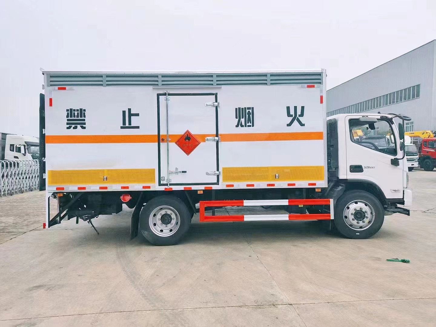 福田歐馬可額載6.8噸二類易燃氣體廂式運輸車采用的是5.15米貨箱,3.8排量156康明斯發動機、9R22.5真空大輪胎,6噸大橋,超強承載,專門針對鋼瓶、氧氣瓶等重載類車廂,箱體設計:上百葉窗下透氣孔。選用的是我司專用定制型箱體,可選擇側門形式、箱體采用的是我司強度非常高的材料。廂體底部鋪導靜電膠板,車輛副梁配備導靜電帶,廂體內襯壁裝單排臥環,廂體內頂部安裝煙感報警器,廂體安裝防盜報警器。隨車配備手提滅火器,危險品三角頂燈,防護帽等,嚴格按照國家危險品法規進行“氣體”標識粘貼等。隨車提供資料:機動車購車發票,整車合格證,隨車工具,服務手冊,保修手冊。