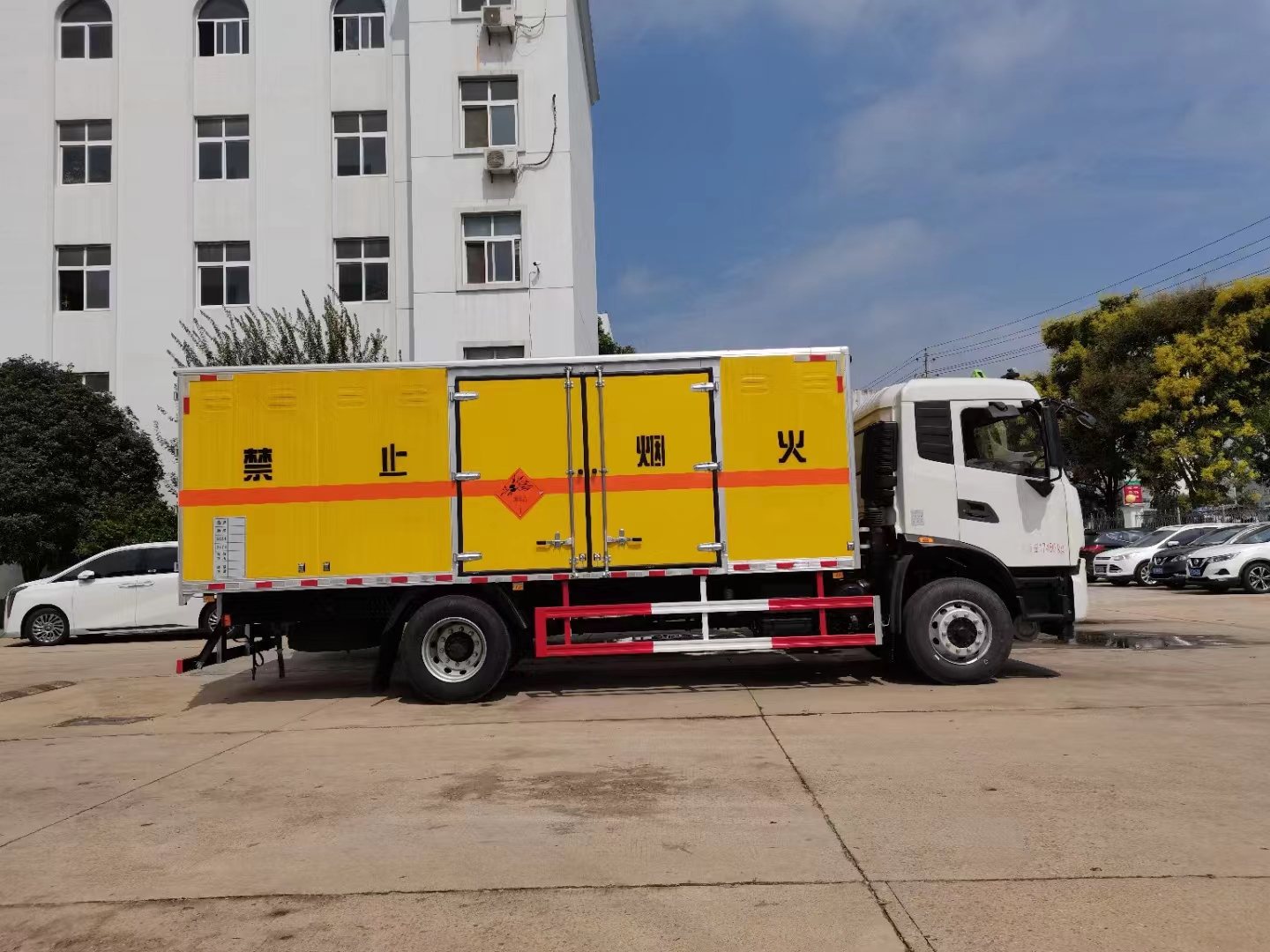 東風天錦國六爆破器材運輸車定制有防爆防阻燃箱體,貨箱可進行多種開啟方式,側門多選,尾部可加裝液壓尾板,整車不超重,讓您使用更省心!