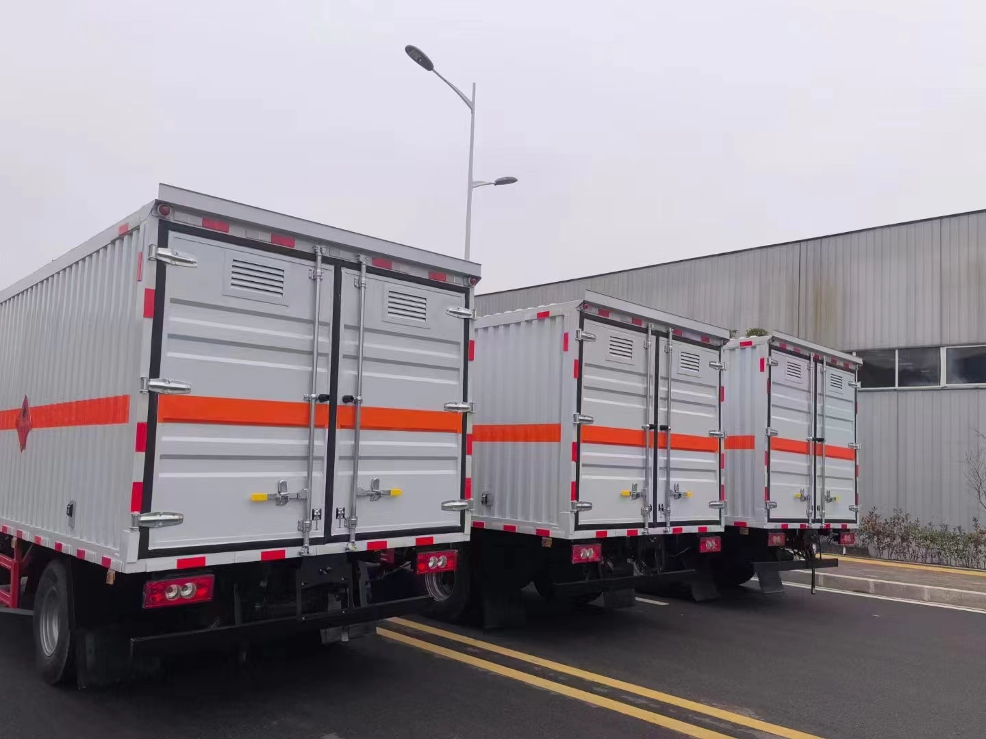 福田奧鈴國六瓦楞板危險品車選用的是危險品專用底盤,福田奧鈴駕駛室,3人座,可選康明斯131馬力或云內(nèi)150馬力,匹配有中控鎖、電動門窗、原廠空調(diào),為了使用更方便,該類車輛采用的冷軋板折彎而成的瓦楞板,扎實牢固,箱體可選單開側(cè)門或一個雙開門,尾部匹配的是一個雙開門。為了防止車輛導(dǎo)靜電,該車匹配的是我司專用的防靜電膠皮,底板橫梁加密,副梁加密。