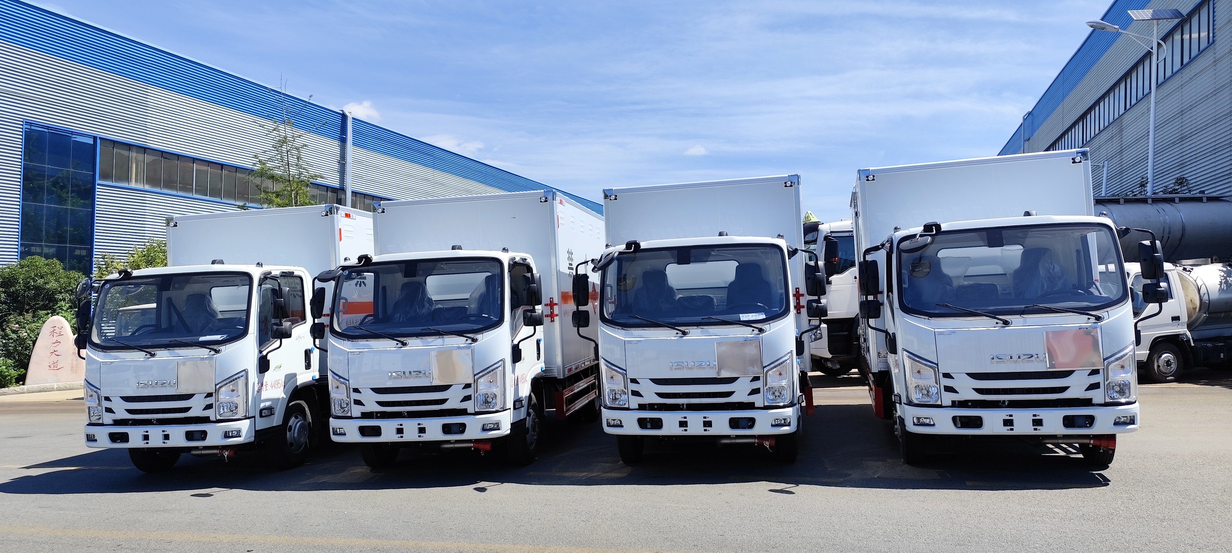 內蒙李總四臺五十鈴國六藍牌易燃氣體廂式車批量發車