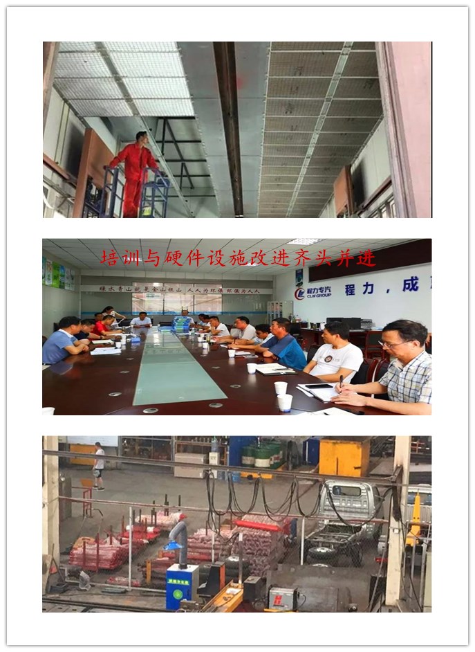 程力集團董事長程道國、總經理程阿羅親子召開全體高層學習討論會,把環保建設提高到國家對人民的最高承諾,是最大民生的政治高度來認識,來組織實施,堅定地打一場漂亮的環保攻堅戰。經過數十天的高溫奮戰,程力汽車集團環保整治取得了階段性的勝利成果,加強了環保隊伍、擴大了辦公場地,增配了環保專業人員,建立檔案、臺賬,完善了標準化油漆生產線的設備設施,增加了環保硬件改造投入,設立了企業內部環保建設專項基金,為企業綠色發展夯實了堅實的根基。以下是具體實圖: