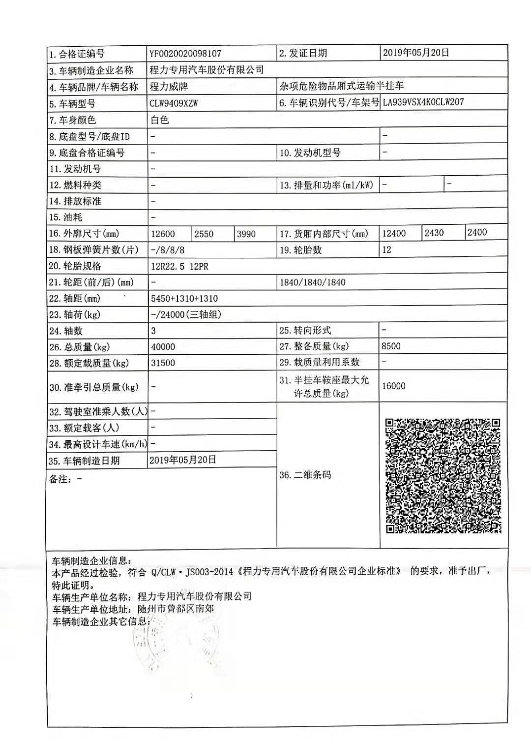 很多客戶因為政策影響不敢選擇購買危險品車,截止目前我司得到最新消息:半掛運輸車不受安全達標影響,雜項半掛危險車任性購!目前程力專汽車間生產有九類雜項危險品廂式運輸半掛車現車兩臺,客戶來廠即可辦手續提車即走!需要購車的客戶抓緊時間預訂!