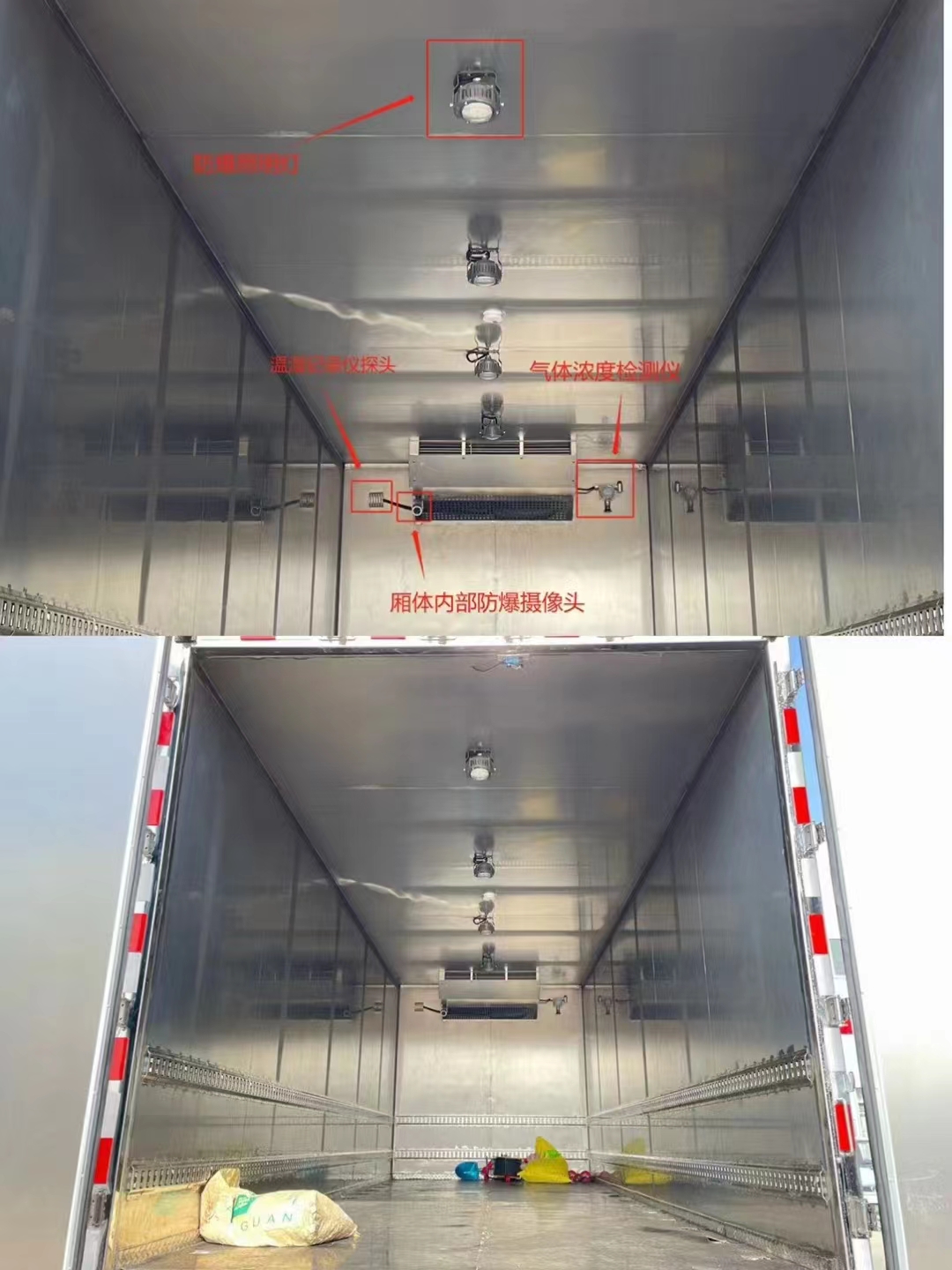 上裝配置:底板為花紋板、四周頂部加透氣孔,貨箱尺寸為:6800×2450×2400、外冷軋鋼板或碳鋼板制作、內(nèi)鋁板、中間8mm厚保溫板、箱體為保溫冷藏設(shè)計箱體底稅鋪有1公分厚的防靜電膠皮、側(cè)板安裝2排固定貨物的臥環(huán)、箱內(nèi)頂部安裝LED照明燈和煙霧報警器、防盜報警器、滅火器、駕駛室危險警示燈、防火帽、后雙開門,其它均按廠標執(zhí)行組織生產(chǎn);選用凱雪冷機,溫度可達-18度公告完全符合法規(guī),無任何缺陷,冷機及尾板公告同時體現(xiàn)。