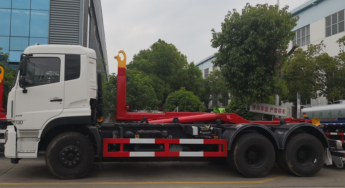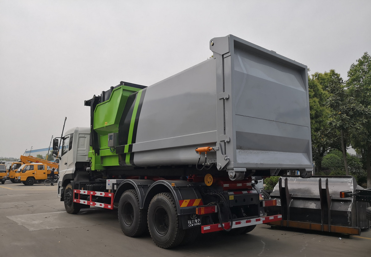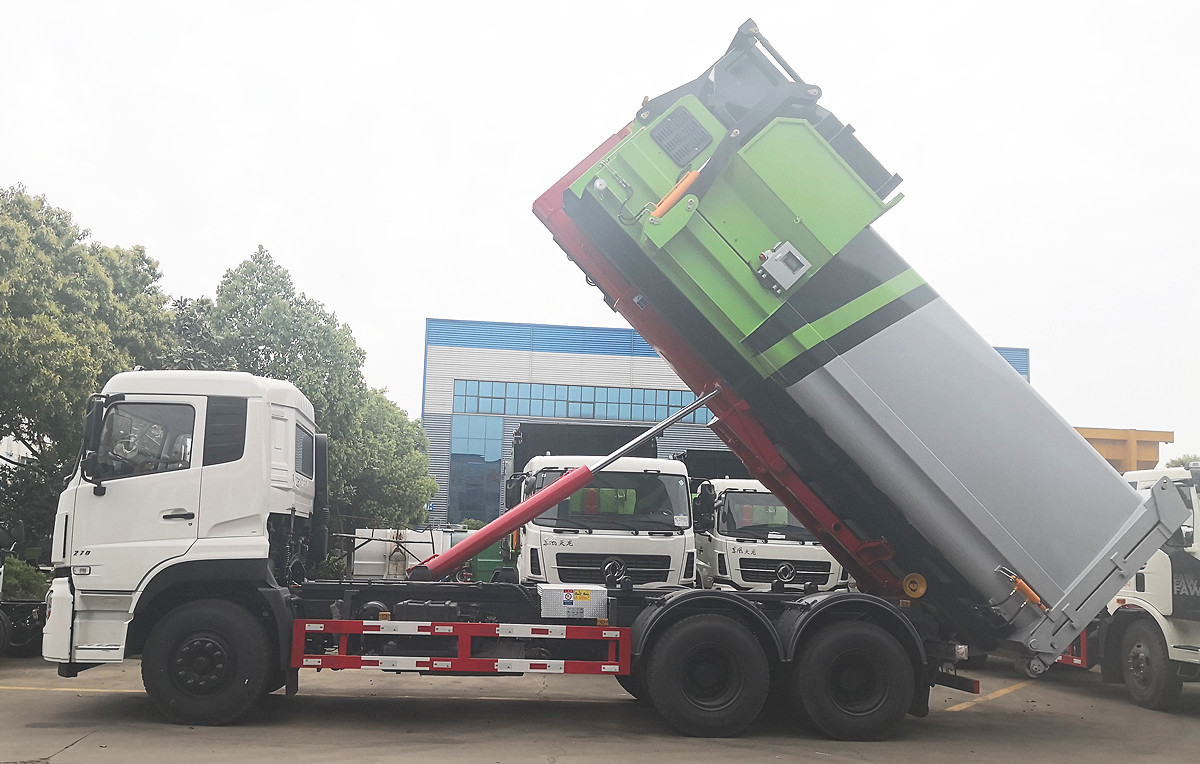 東風(fēng)天龍勾臂垃圾車帶移動(dòng)式壓縮垃圾站