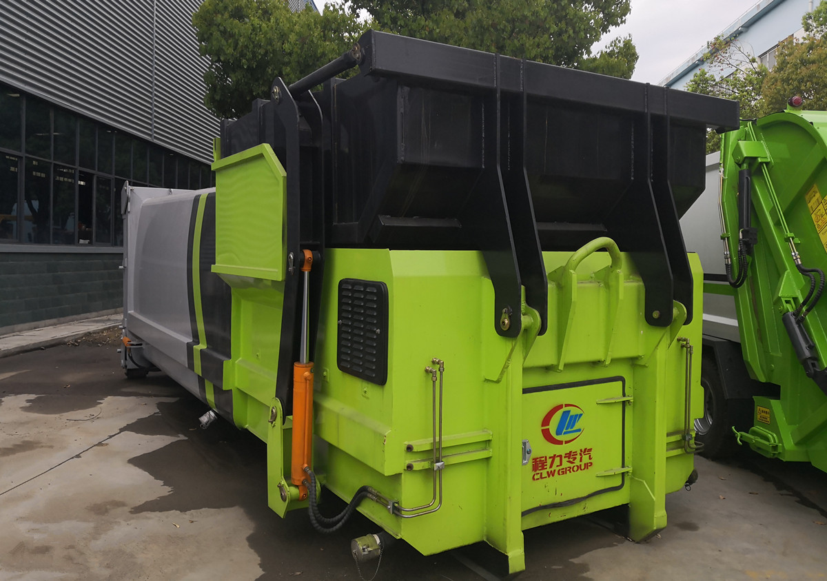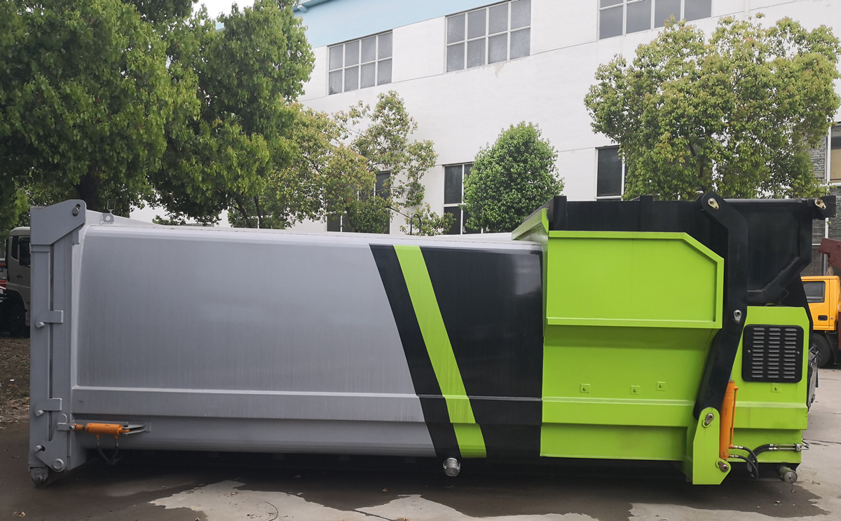 移動(dòng)式壓縮垃圾箱參數(shù):廂體有效容積18立方,外接380V三相四線交流電源,車廂尾部采用液壓快速接頭,通過底盤部分提供系統(tǒng)壓力以帶動(dòng)車輛尾門的關(guān)合。