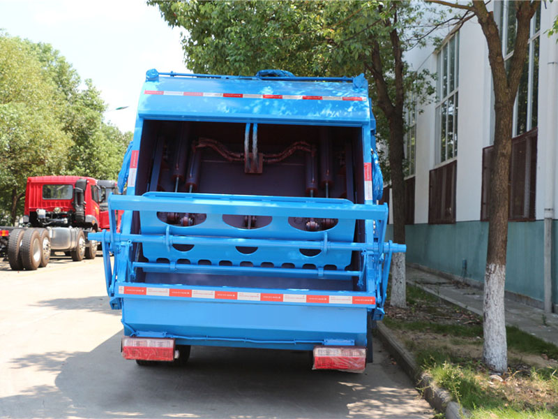 壓縮式垃圾車采用機電液一體化技術,借助機、電、液聯合自動控制系統,通過車廂、填裝器和推鏟等專用裝置,實現垃圾倒入、壓碎或壓扁、強力裝填,把垃圾擠入車廂并壓實和推卸。其主要特點是垃圾收集方式簡便、高效、具有自動反復壓縮以及蠕動壓縮功能,壓縮比高,裝載質量大,作業自動化,動力性、環保性好,整車利用效率高。