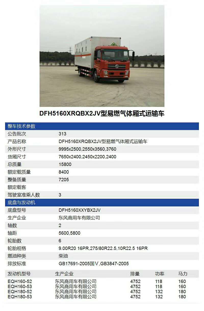 2)東風單橋易燃氣體廂式車,5600軸距,箱長7.6米