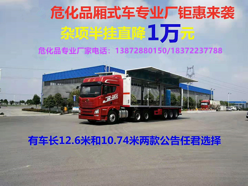 危險品車作為專用特種專用車,運輸裝卸相比普通貨物更麻煩,為了讓客戶卸貨更方便,今天為您推薦的是九類雜項半掛翼展危險品車,具體明細如下: