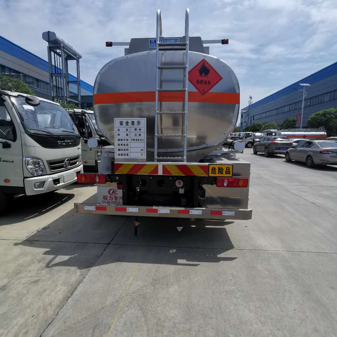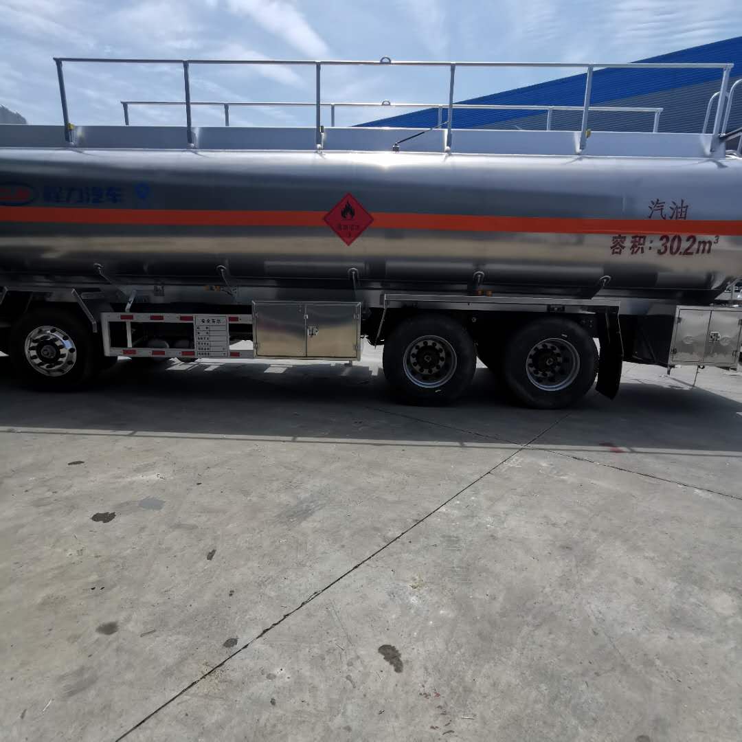 東風天龍前四后八油罐車上裝配置:罐體采用5083鋁合金板材,罐體厚度6mm,封頭7mm,內隔板5mm。帶全歐標(帶歐標罐口,海底閥,下裝油口,油氣回收一套,防溢流,探桿,探座)帶海底閥自動關閉系統,帶專用油泵,帶一個折疊式護欄 ,2根與罐體等長的吸油管,配歐式鎖,2個滅火器,1個爬梯,后保險杠,1根接地線。罐體采用優質鋁合金板材制作, 罐體及各保險杠貼視覺反光條,貼“貼易燃液體”字。