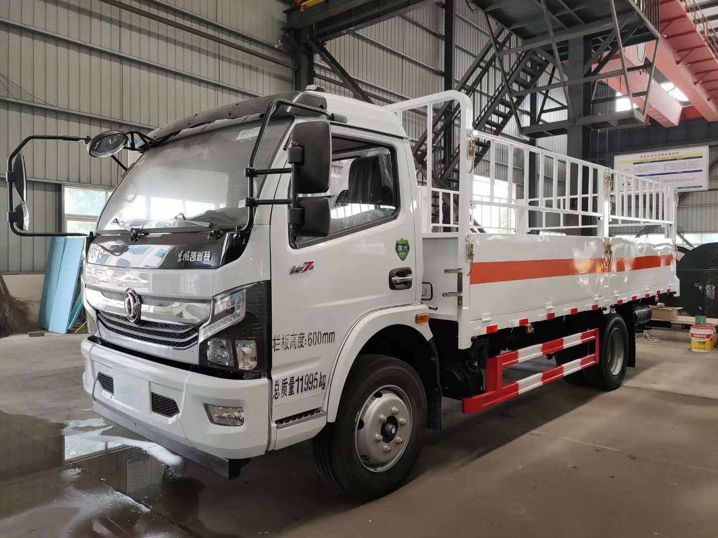 東風大多利卡國六氣瓶運輸車采用K7系列2030單排駕駛室,原廠危貨底盤,2.7噸前橋,5.5噸后橋,萬里6TS55變速箱,斷氣剎,192雙層大梁,245真空胎,CY4SK361發(fā)動機,朝柴170馬力,帶空調,電動門窗,中控鎖。