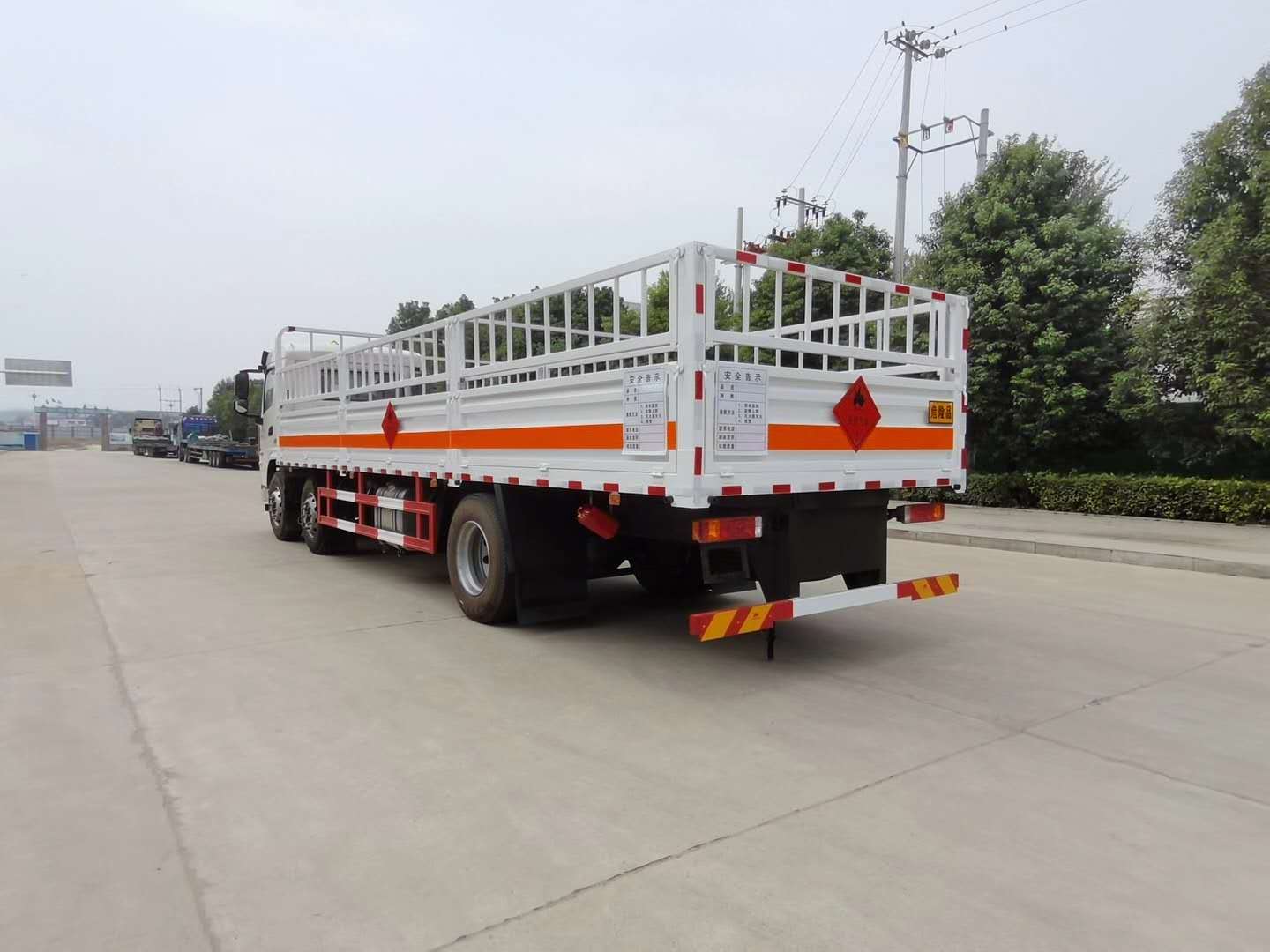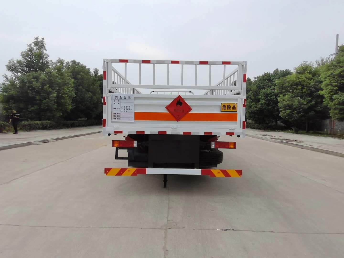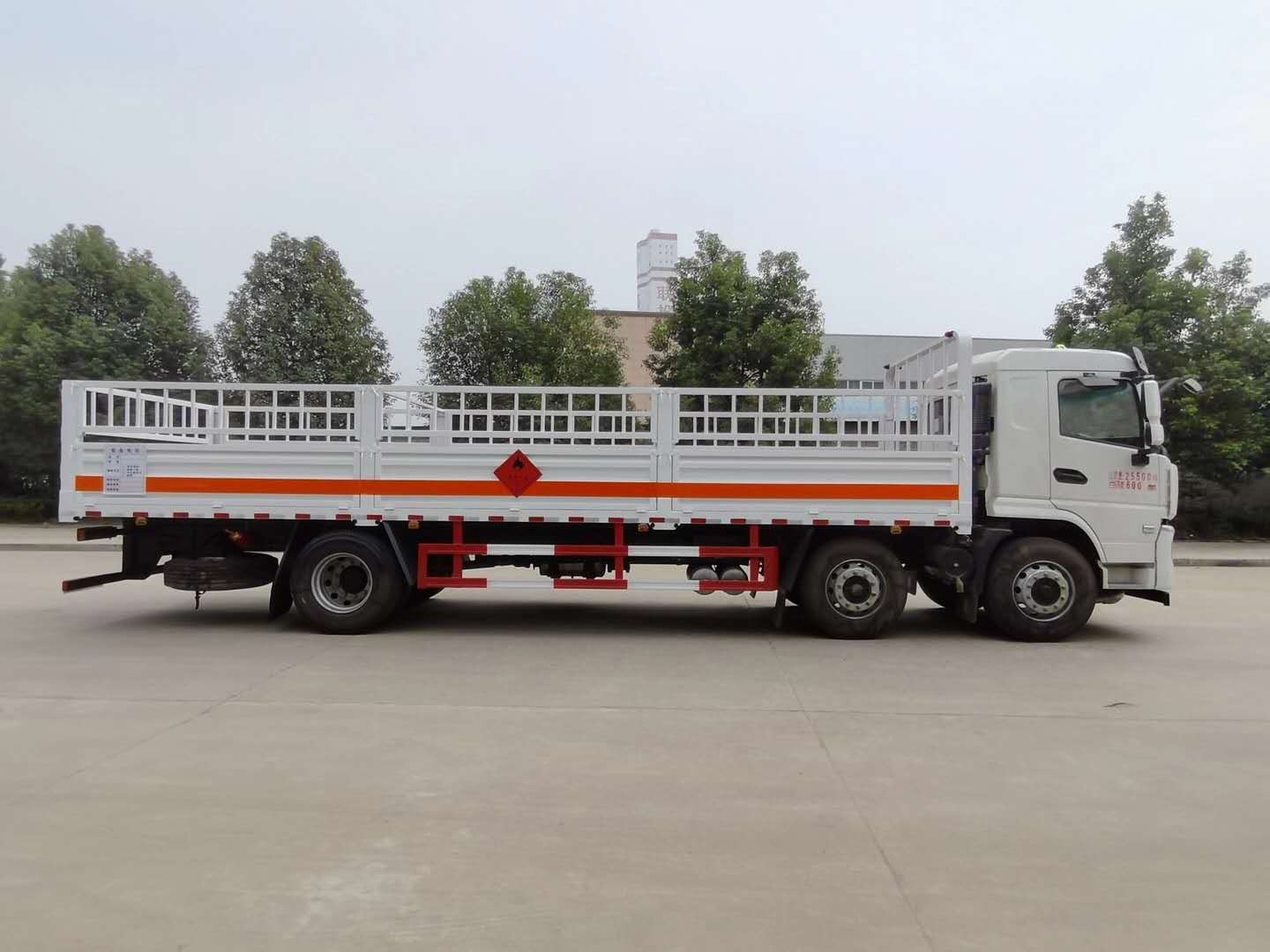 陜汽軒德三軸氣瓶運輸車采用倉欄式上裝結構,邊板對折八開門(單邊四開門),上部倉欄為活動式結構可左右翻轉(zhuǎn),外飾1.2mm厚冷軋鋼板,內(nèi)襯為矩形管骨架牢靠穩(wěn)定,底板為3mm厚花紋板(選裝5mm)。該車廂整體可適用于各種氣罐、氣瓶直立運輸,煤氣罐可兩層運輸,底板邊緣間斷式焊接固定臥環(huán),方便固定捆綁氣瓶,操作方便。