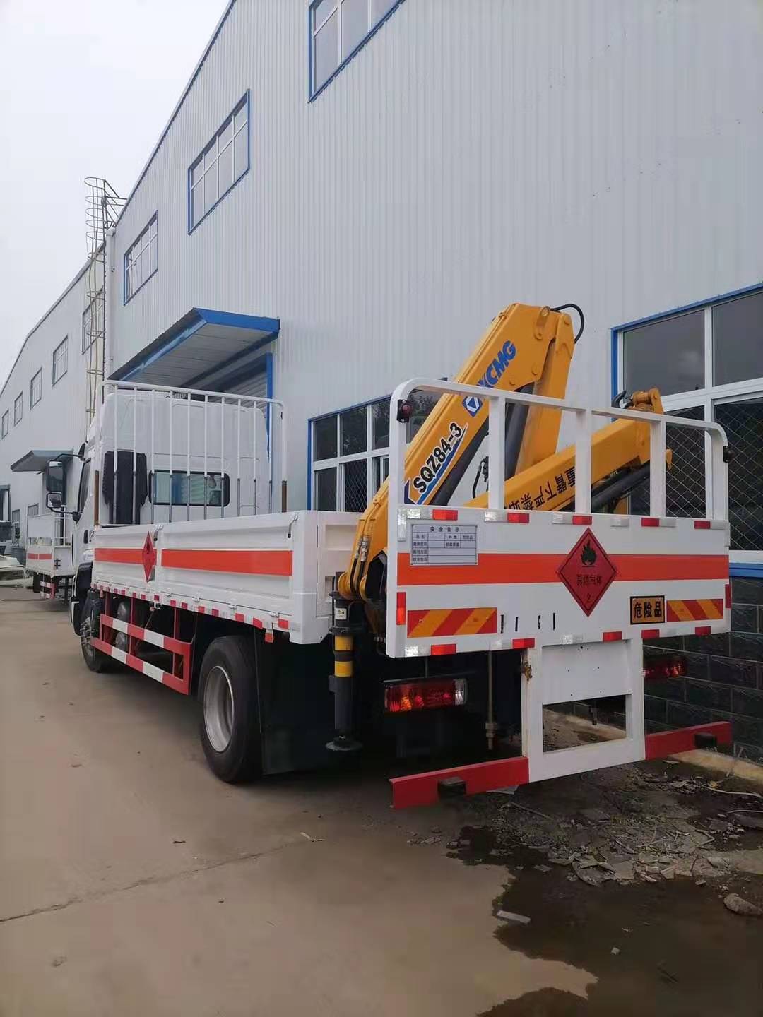 柳汽國六帶吊氣瓶運輸車嚴格按照公告尺寸制作,邊2底5材質,底板上鋪靜電膠皮,帶可卸式高欄,配備滅火器,三角頂燈,靜電拖帶等,嚴格按照國家危險品法規進行“易燃氣體”標識粘貼等