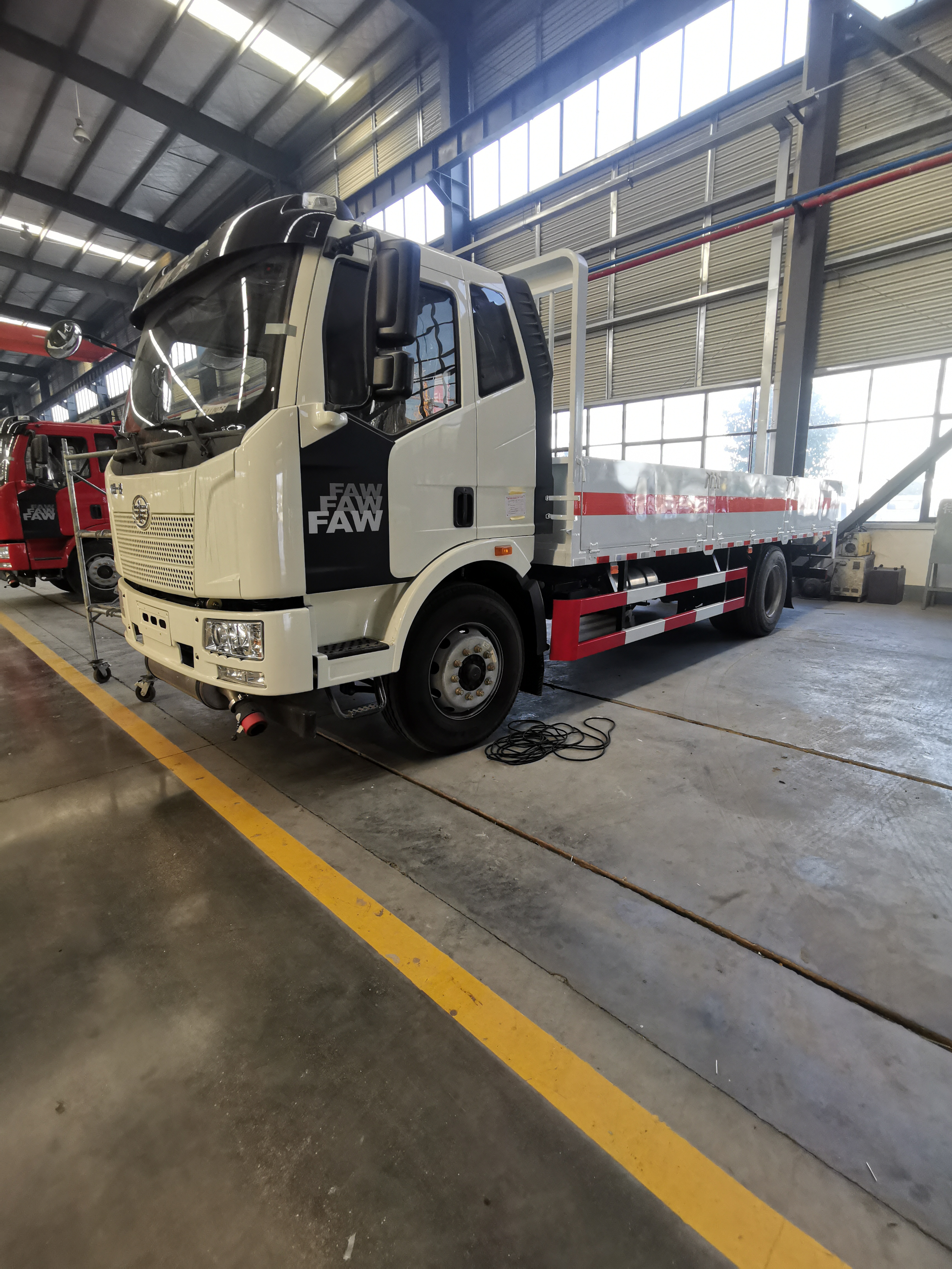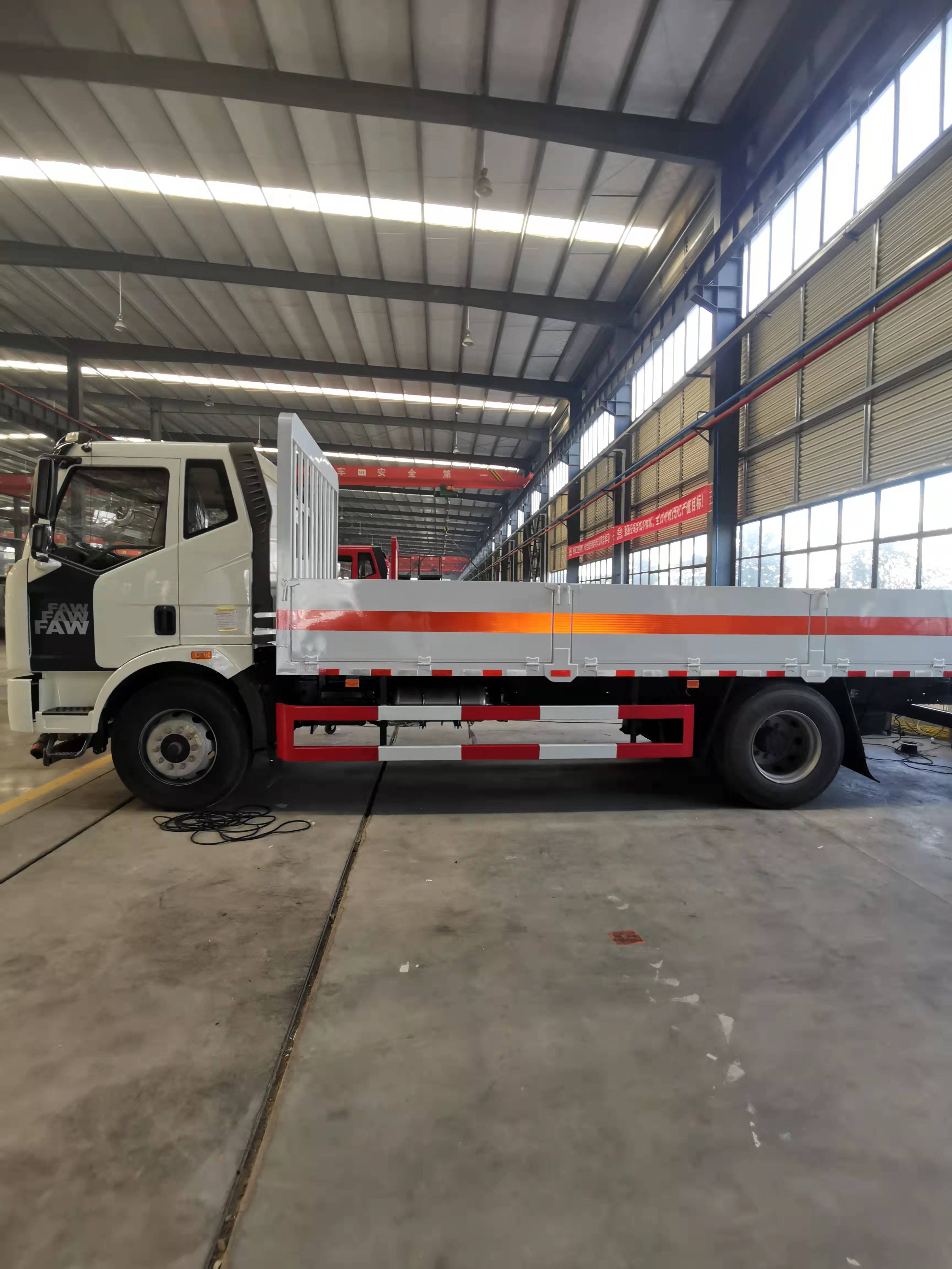 解放J6氣瓶運(yùn)輸車該車廂整體可適用于各種氣罐、氣瓶直立運(yùn)輸,煤氣罐兩層運(yùn)輸,底板邊緣間斷式焊接固定臥環(huán),方便固定捆綁氣瓶,操作方便。