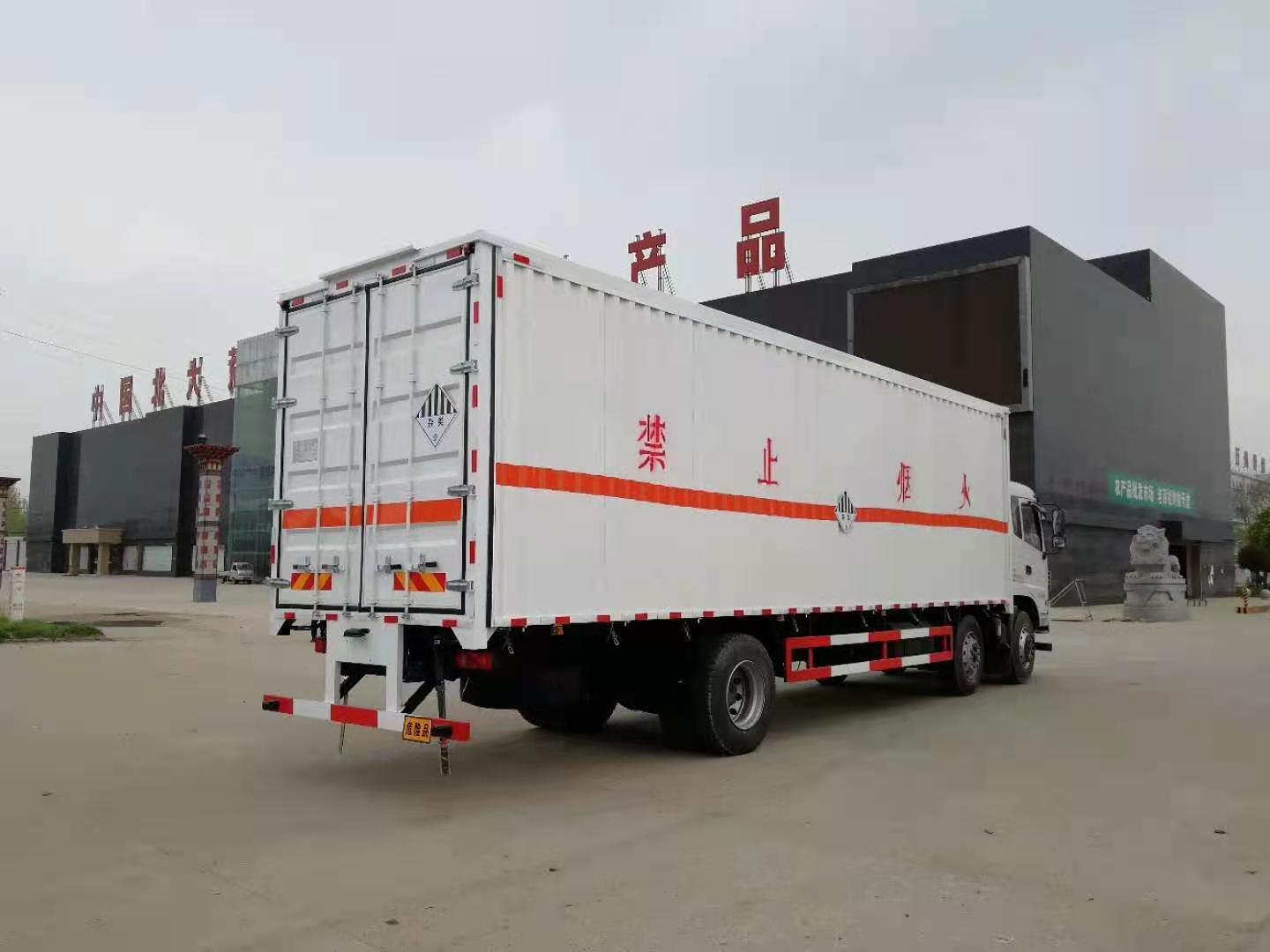 東風專底前四后四9米5危險品車整車型號:DLQ5250XZWEQ雜項危險物品廂式運輸車,采用東風前四后四平頭帶臥汽車,玉柴發動機220馬力國五排放標準,帶方向助力,空調,8檔變速箱,295真空綱絲胎,帶前盤式剎車,帶行車記錄儀,ABS,限速裝置,廂體采用外冷板內鋁板,中間4公分阻,帶煙霧報警器,防盜報警器,底部鋪靜電膠皮。帶危險品三角燈防火罩。有燃油安全達標,有環保,不超重帶空氣懸架,剎車片預警,安全帶提示,防爆胎裝置廂長9.5米。