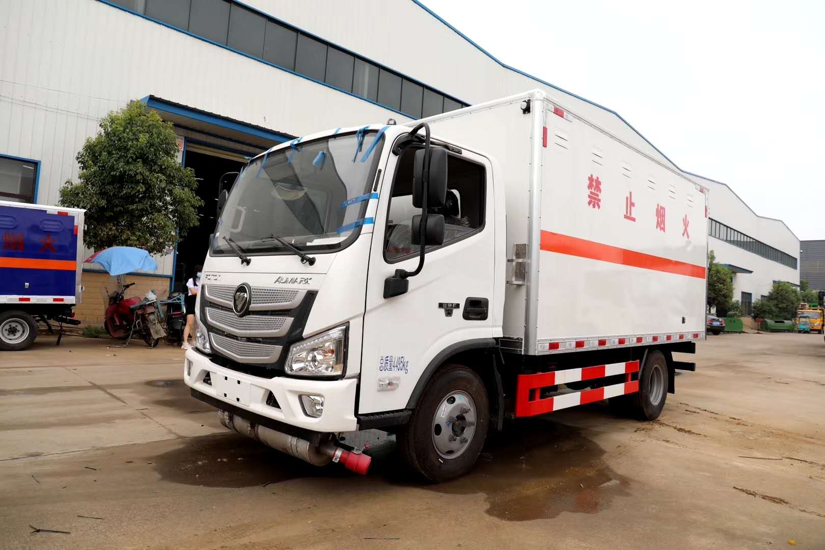 福田奧鈴國六危險品車廂體安裝防飛濺;前后示廓燈;駕駛室頂安裝危險品警示燈;底盤尾部安裝導靜電拖帶;兩側邊板及后板橙色反光帶、危險品標志牌,尾部粘貼危險品標志牌和警告標識牌;車廂前板外部安裝滅火器2只;側防護、后防護符合國家要求;車身貼紅白反光貼,側標志燈符合國家要求。