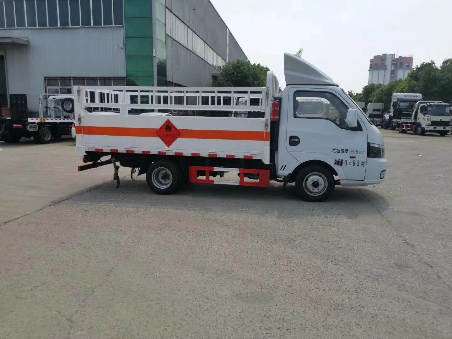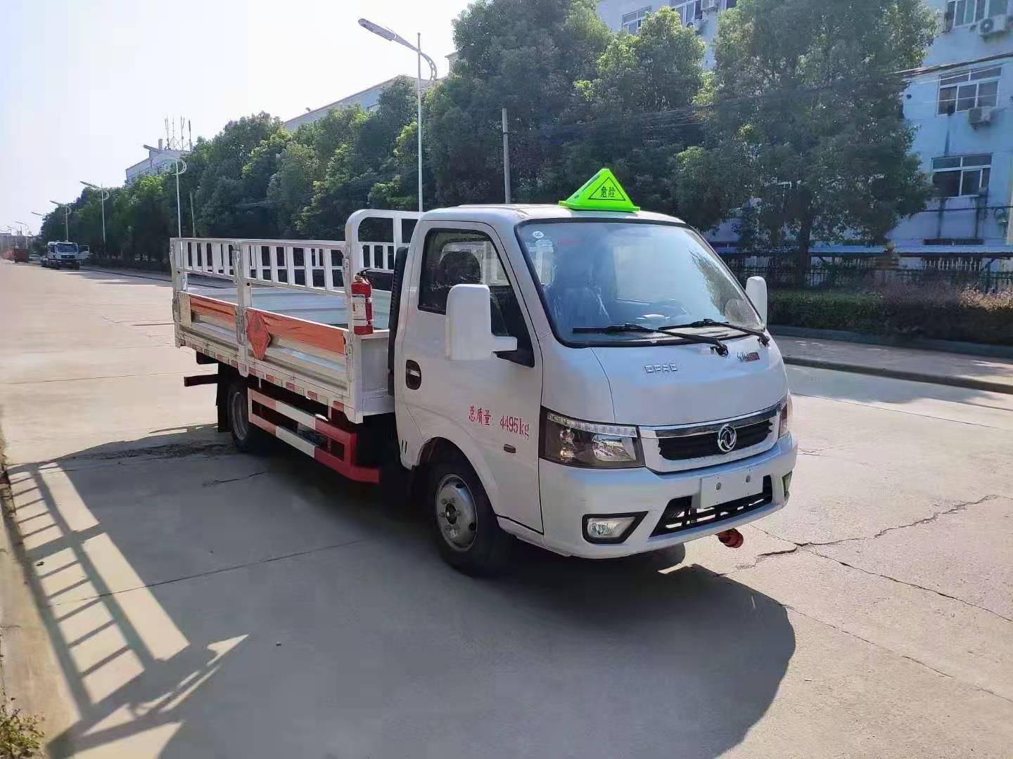 東風途逸3米5柴油國六氣瓶車嚴格按照公告尺寸制作,貨箱可選低欄板式貨箱和可拆卸式花欄式貨箱,底板上鋪靜電膠皮,嚴格按照國家危險品法規進行“易燃氣體”標識粘貼,隨車配備手提滅火器,危險品三角頂燈,防火帽等。帶整車合格證、隨車工具、服務手冊、保修手冊。