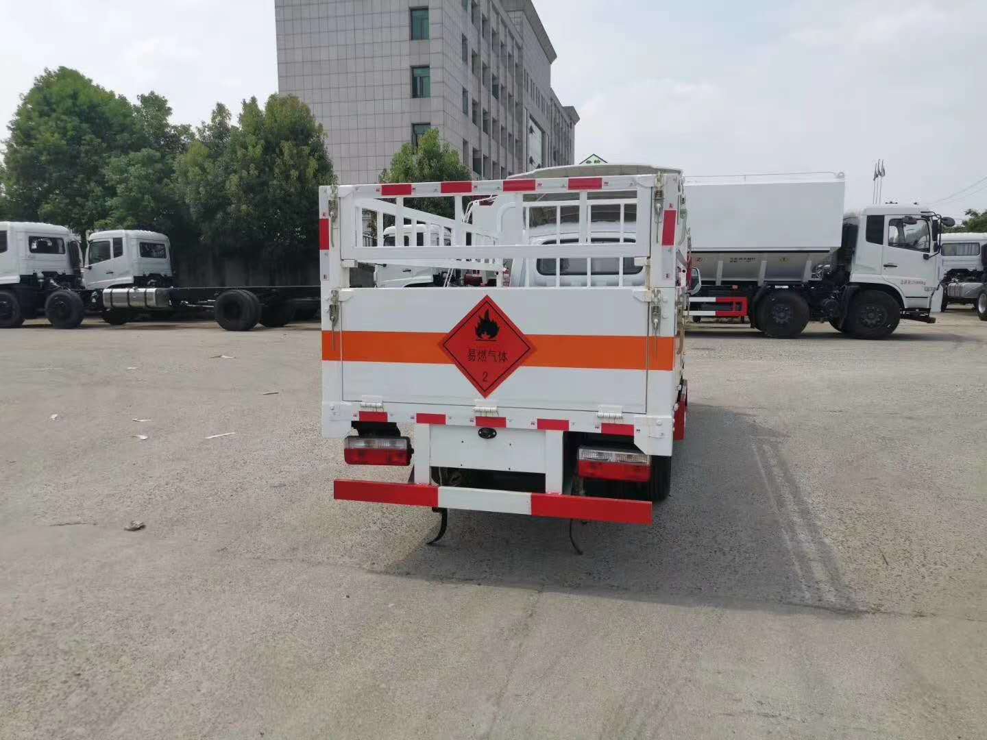 東風途逸3米5柴油國六氣瓶車采用東風途逸柴油危險品車底盤,軸距:2800mm,1650mm寬單排駕駛室,全柴Q23-95E60(95馬力)發動機,5檔變速箱,185R14真空輪胎【后雙輪】,前后橋1.5/3。油剎.標配動力轉向,前盤制動,中控門鎖,電動門窗,定速巡航,藍牙電話,LED日間行車燈,ABS,空調,電源總開關。排氣制動,排氣管前置,ECU限速。