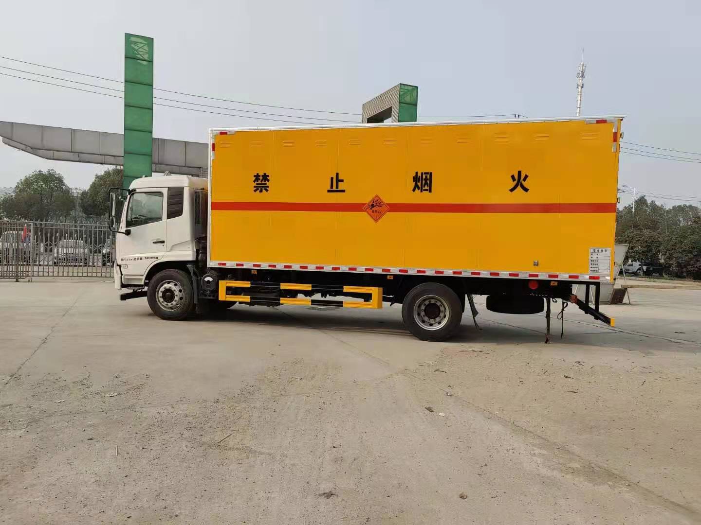 東風(fēng)天錦炸藥車嚴(yán)格按照公告尺寸制作,外板采用 1mm 厚冷軋板有一次性成型的百葉窗,內(nèi)飾為導(dǎo)電性能良好的鋁板有透氣孔,內(nèi)襯為矩形管骨架牢靠穩(wěn)定,內(nèi)部填充為透氣防潮阻燃的擠塑板,四種材料經(jīng)現(xiàn)代工藝復(fù)合而成,廂體外部上下鋁合金型材包邊,底板和車廂前下部鋪橡膠皮,后門雙開,右側(cè)中部兩個雙開門,內(nèi)部有固定貨物的臥環(huán),車輛外部有靜電帶、滅火器、防火罩,車廂內(nèi)安裝煙霧報警器和門防盜報警器,嚴(yán)格按照國家危險品相關(guān)法規(guī)張貼。廂體內(nèi)部安裝便于可固定貨物的卡槽,底板為3mm鋼板上面鋪防靜電膠皮,靜電拖地帶,滅火器兩個,危險品三角頂燈,防火帽,廂體顏色白色,其他嚴(yán)格按公告制作。 底板為3mm鋼板上面鋪防靜電膠皮,靜電拖地帶,滅火器兩個,危險品三角頂燈,防火帽,廂體顏色白色,其他嚴(yán)格按公告制作。