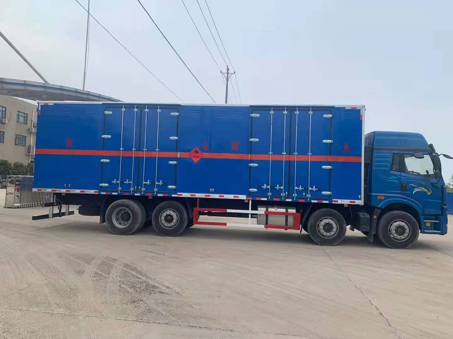 解放悍V前四后六危險品車可定制單開側門和雙開側門,也可加裝液壓尾板,歡迎各新老客戶來電咨詢訂購!